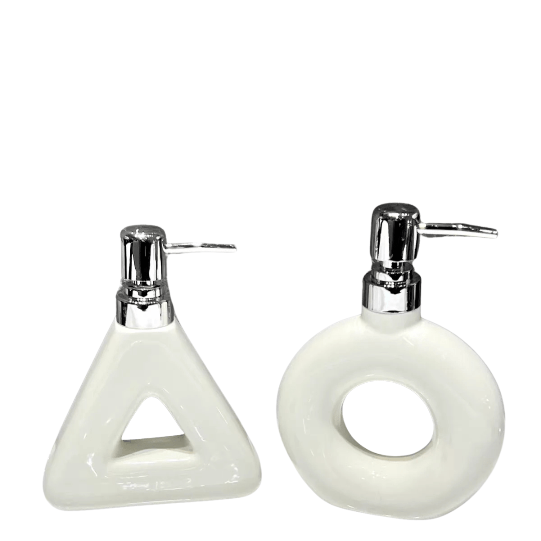 Dispenser Sapone Bagno Diversi Modelli Bianco Materiale Ceramica Design Geometrico