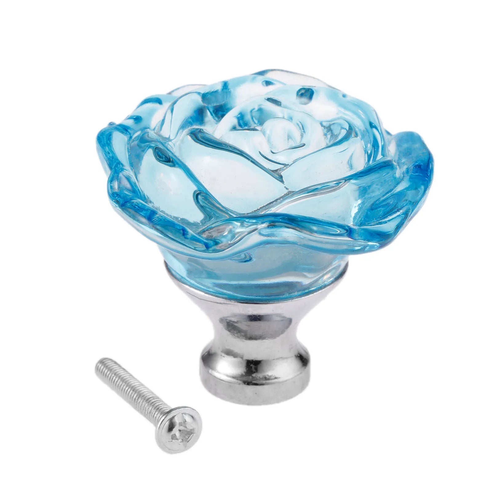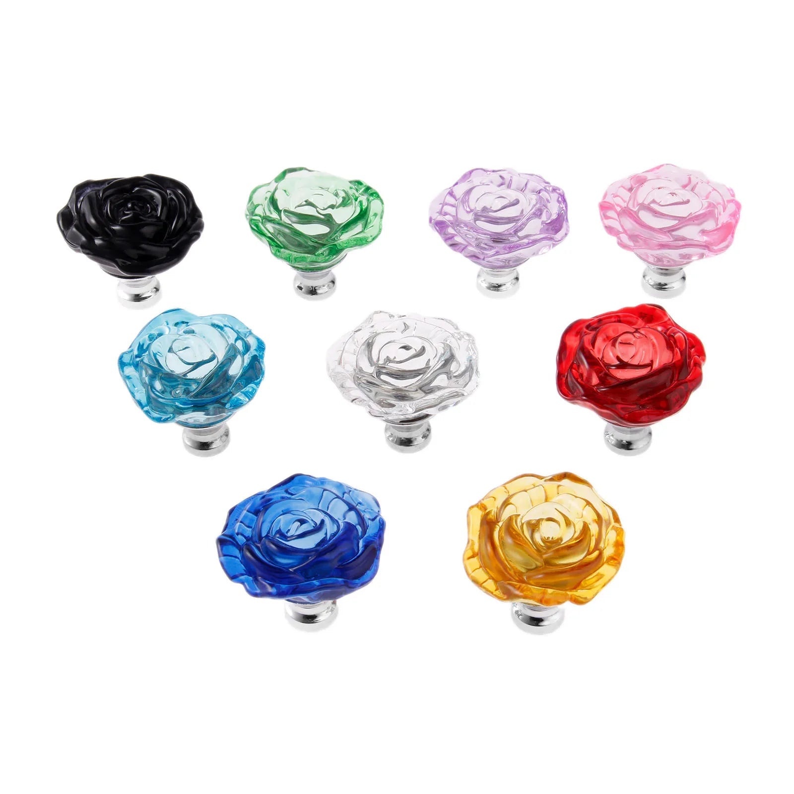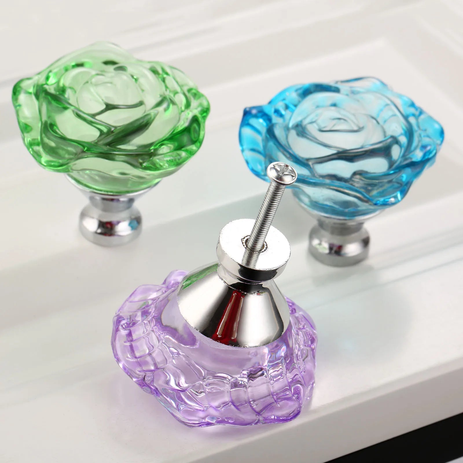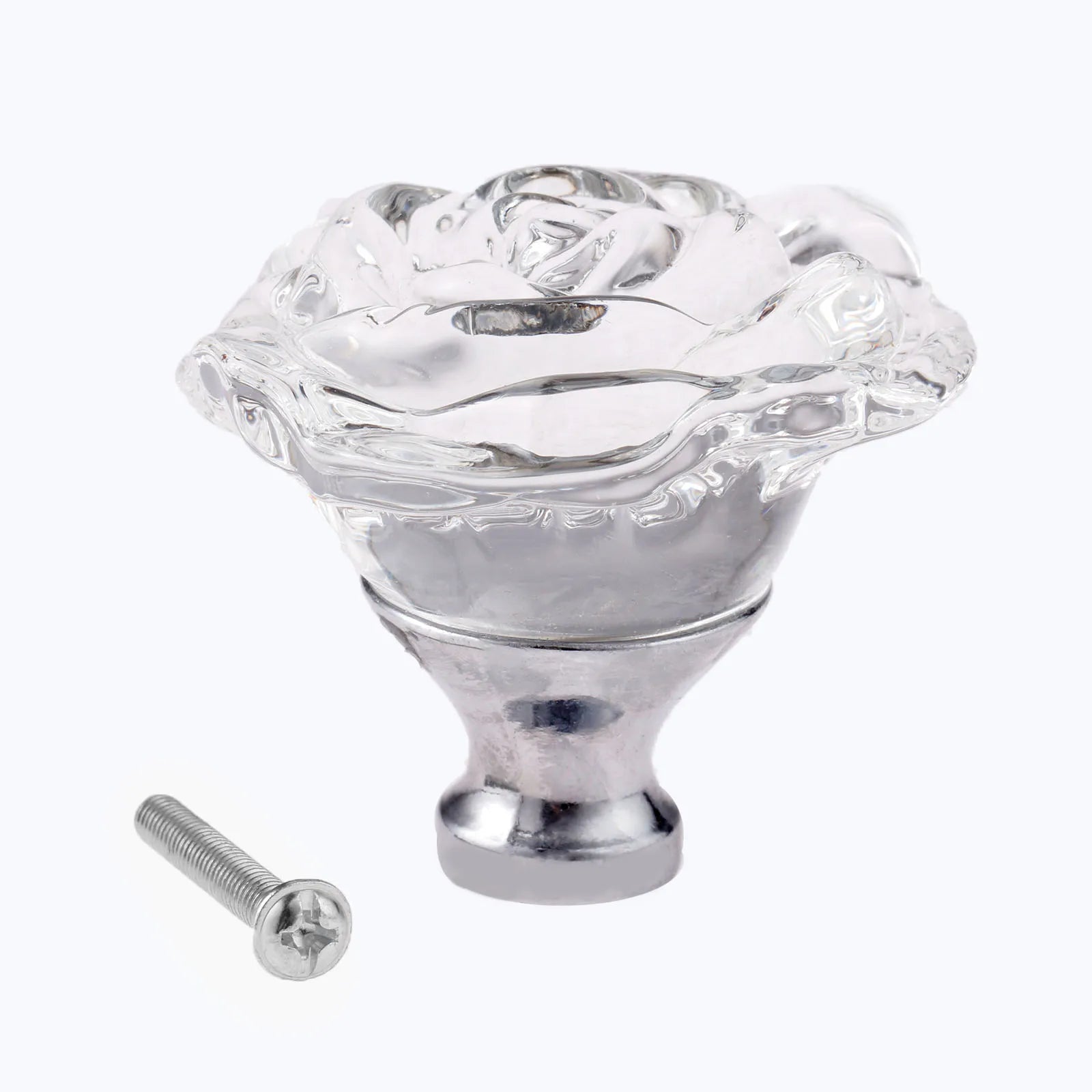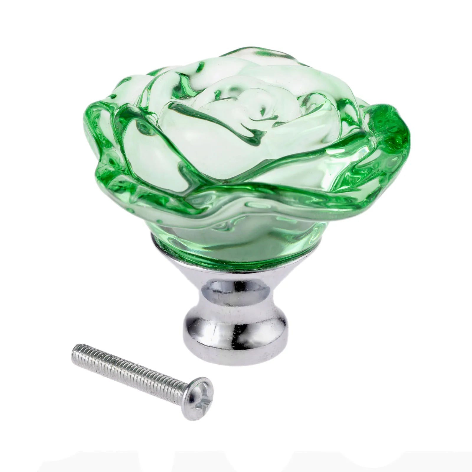 Pomello Forma Rosa Diversi Colori Effetto Vetro Trasparente Design Innovativo Vetro Zinco Arredamento Mobili Casa