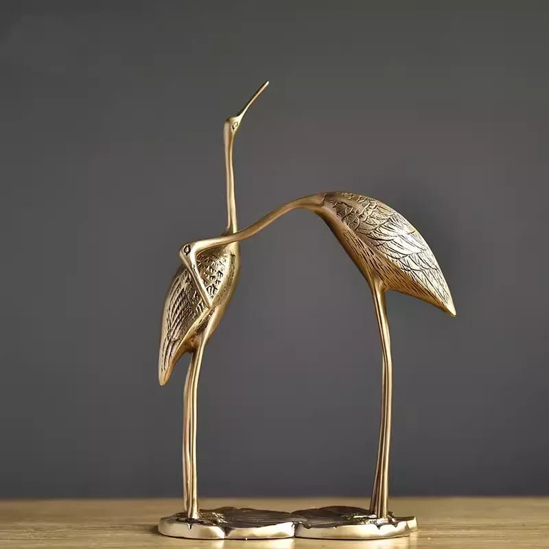 Statuetta Decorativa Oro Gru Leggera Ottone Decorazione Casa Artistica Piccola