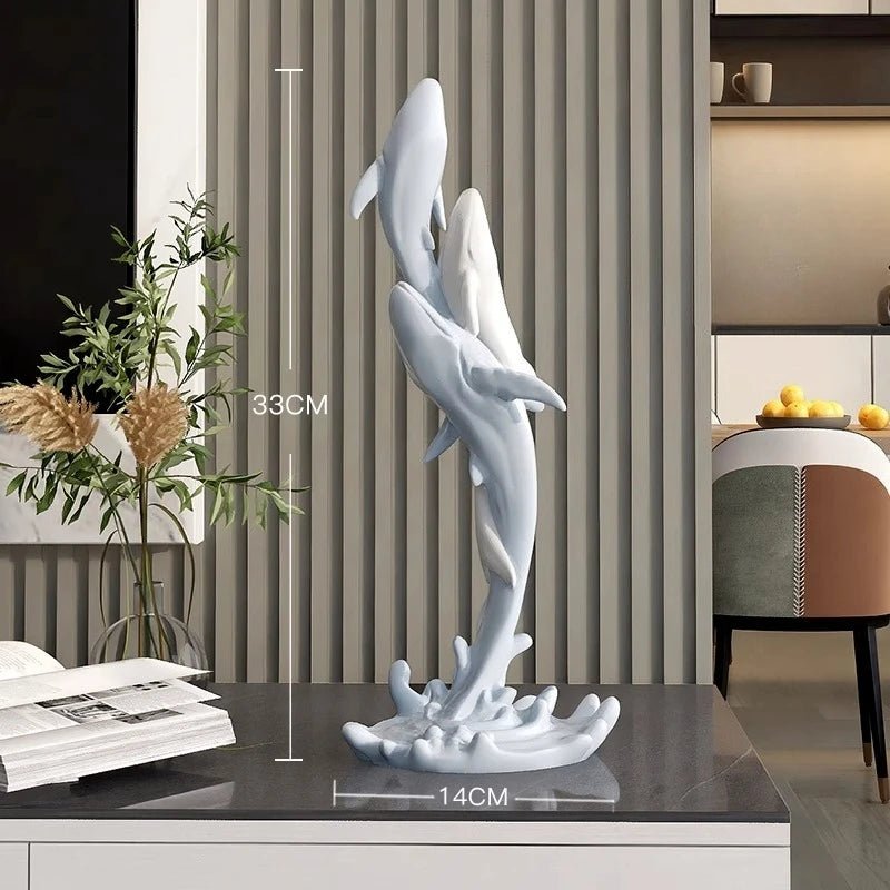 Statuetta Decorativa Squali Pesci Salotto Decorazioni Casa Ufficio Resina