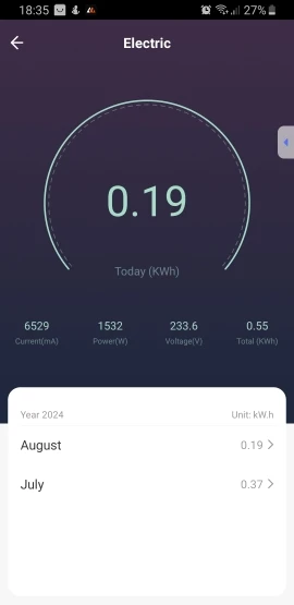 Teseo Coppola Molto bello Air Fryjer. Consumo energetico di circa 1500 Watt a 238 Volt. Le patatine fritte ricavate dal programma finito di 15 minuti e 180 gradi sono risultati super croccanti. Il ventilatore sta lavorando tranquillamente. Raccomando il venditore.