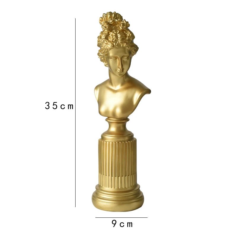 Statua Decorativa Oro Bianca Donna Busto Elegante Raffinato Resina