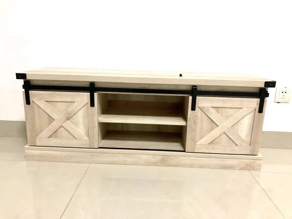 Mobile Base Tv Legno Bianco Dettagli Neri 2 Scaffali Aperti 2 Cassetti Ante Sostegno Televisione Arredamento Interni