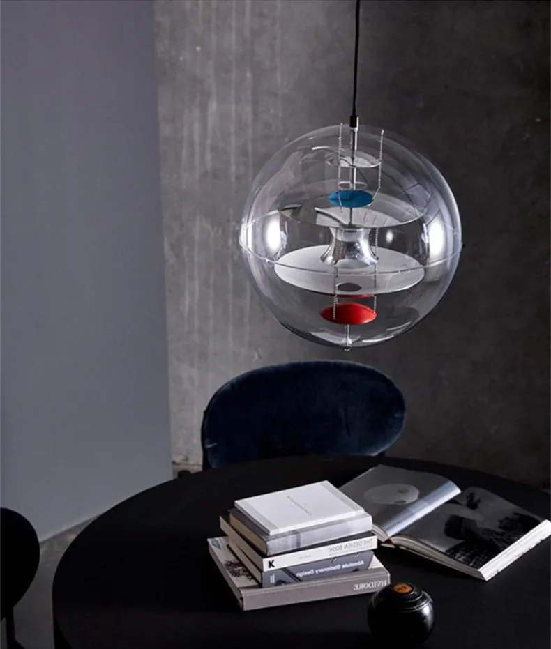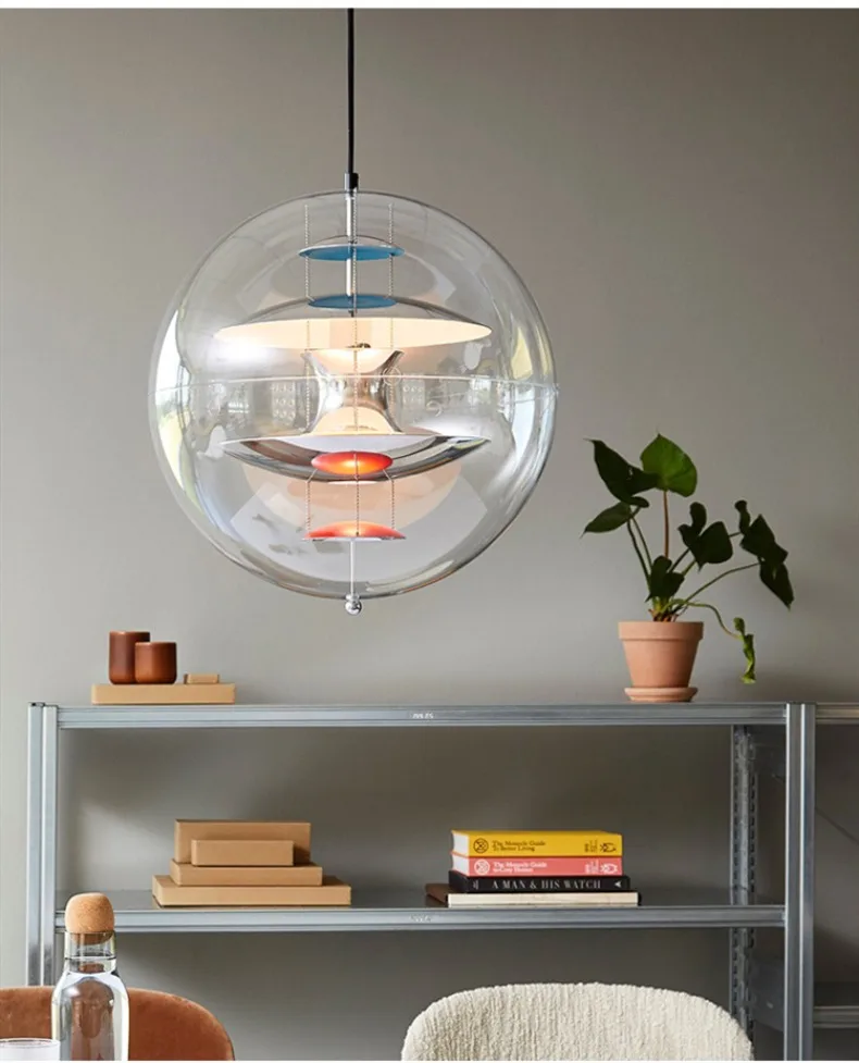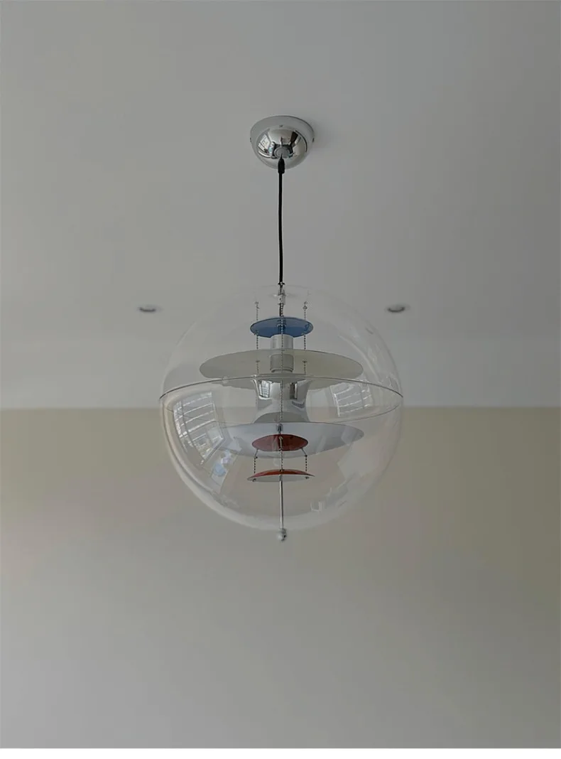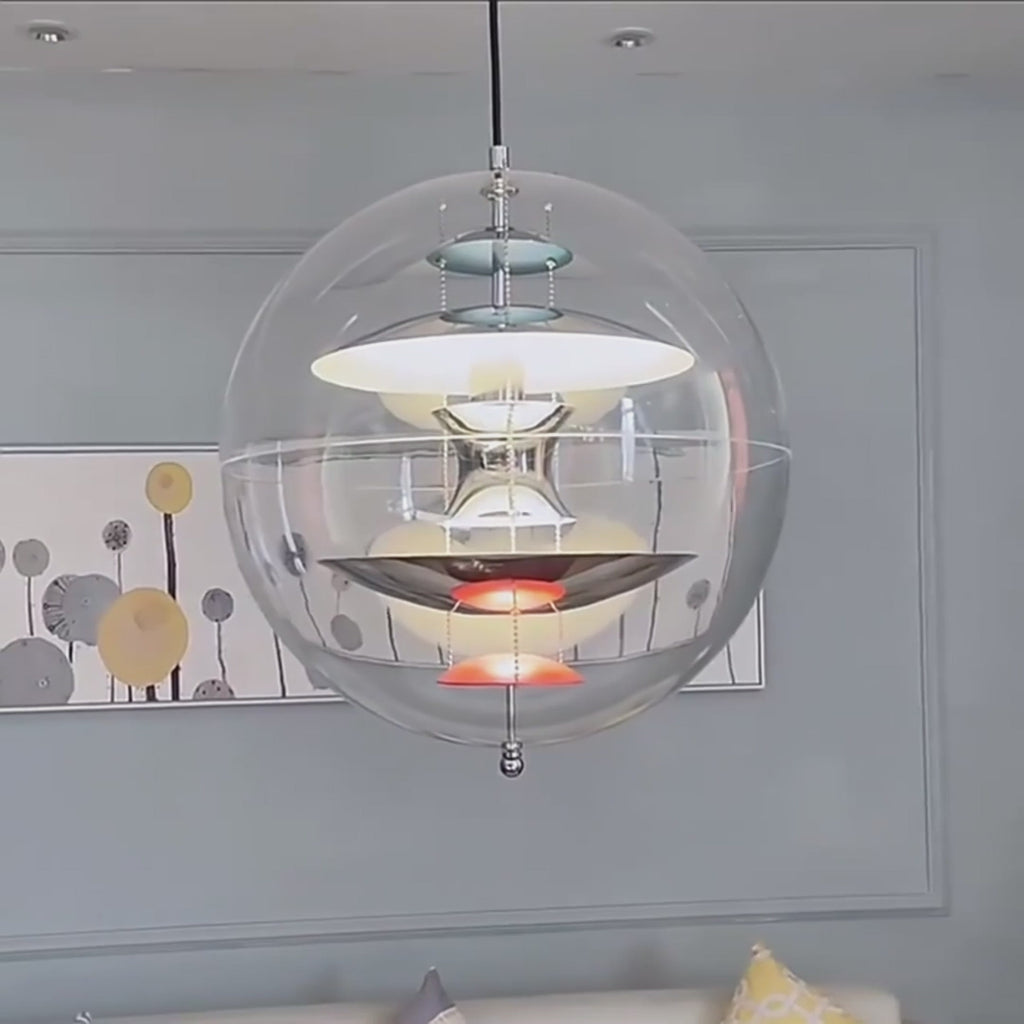Lampadario Soffitto Forma Rotonda Sfera Trasparente Diversi Colori Interni Emissione Luce Arredamento Industriale
