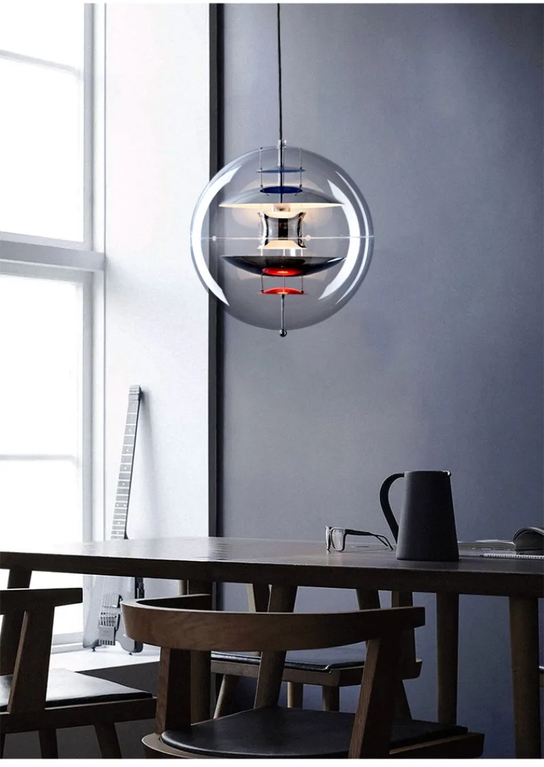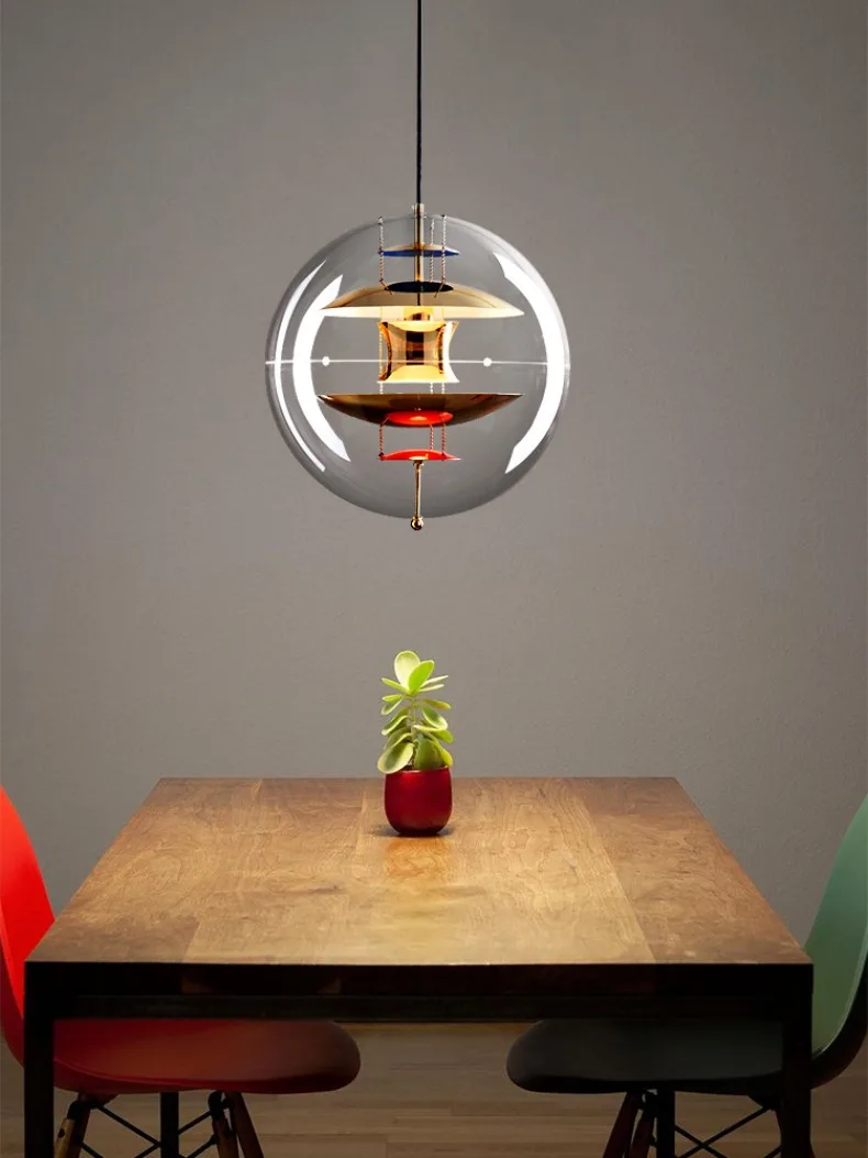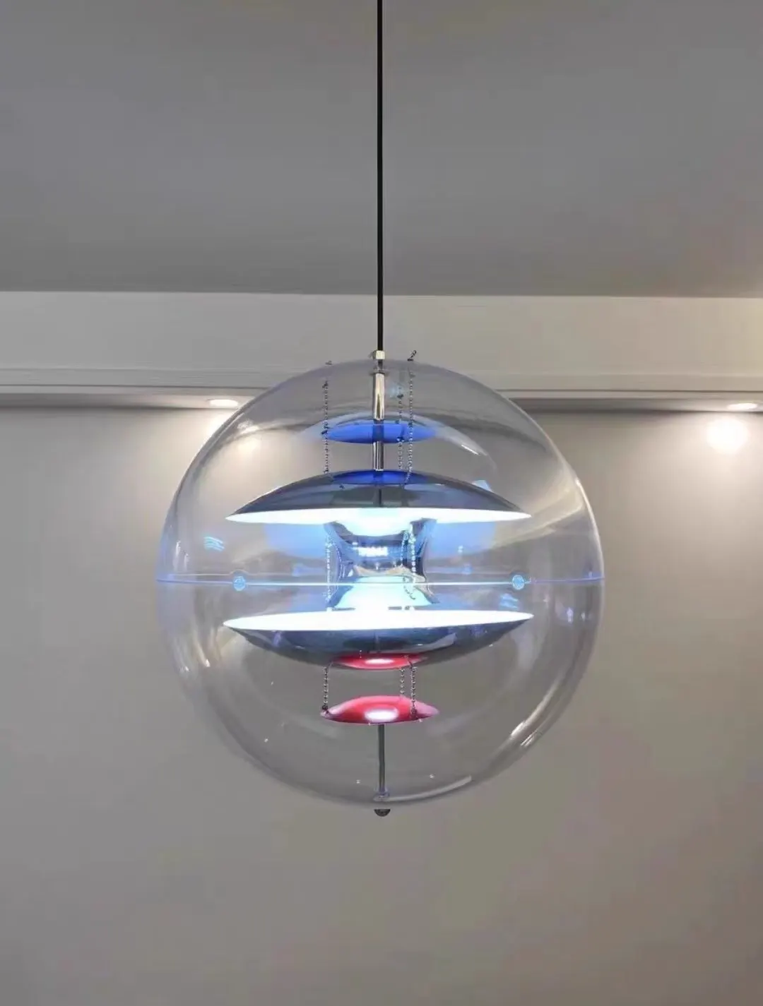 Lampadario Soffitto Forma Rotonda Sfera Trasparente Diversi Colori Interni Emissione Luce Arredamento Industriale