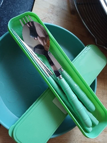 Elda Rinaldi La qualità è la ragione principale per la valutazione bassa. I bordi della forchetta e del cucchiaio non erano ben lucidati. C'erano bordi irregolari e non lisci. Per quanto riguarda gli utensili da pranzo, oltre alle bacchette, sia la forchetta che il cucchiaio erano considerati non soddisfacenti.