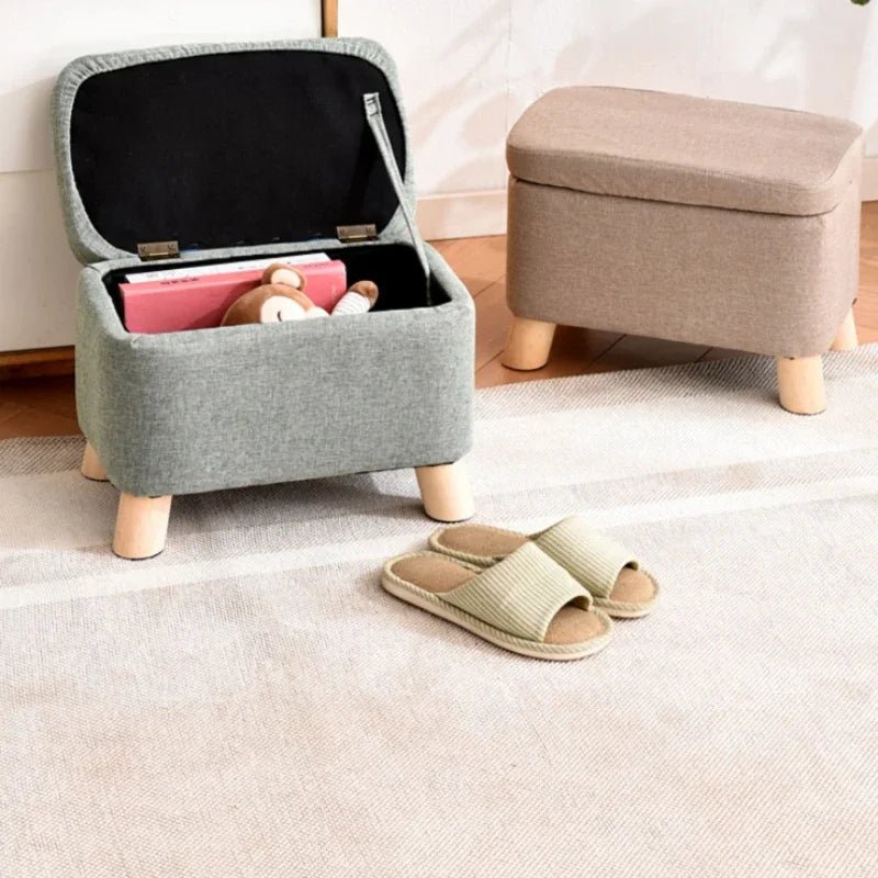 Sgabello Contenitore Diversi Colori Accesi Imbottitura Legno Tessuto Salotto Arredamento Poggiapiedi