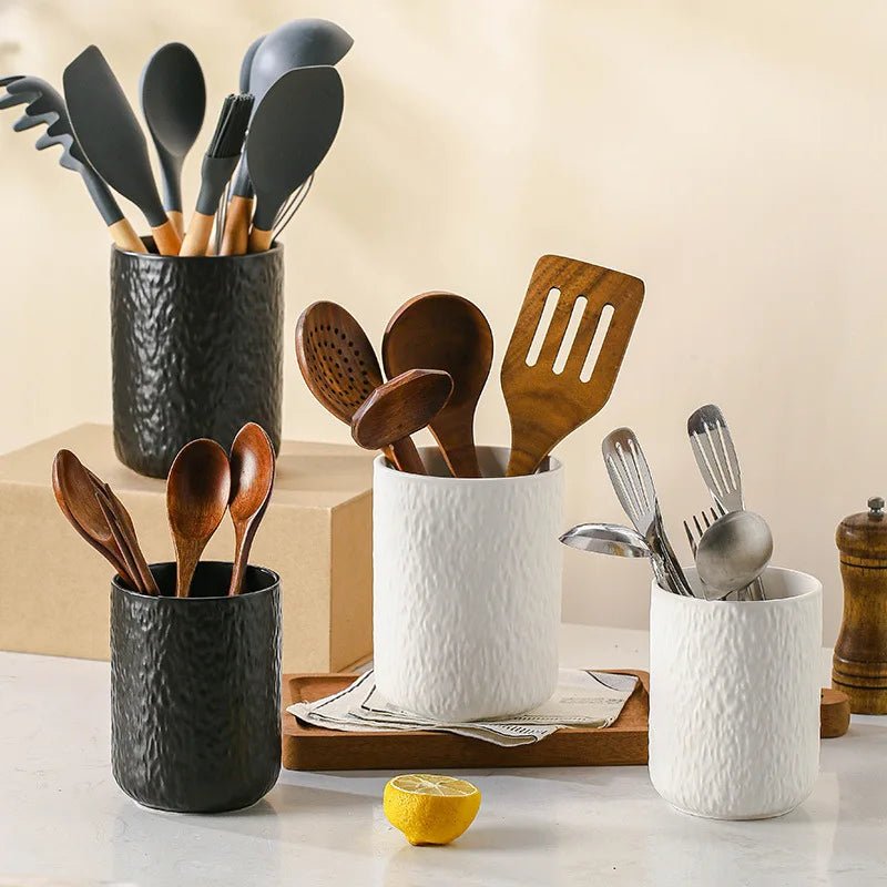 Organizer Cucina Utensili Posate Attrezzi Cucina Pratico Comodo Resistente Bianco Nero