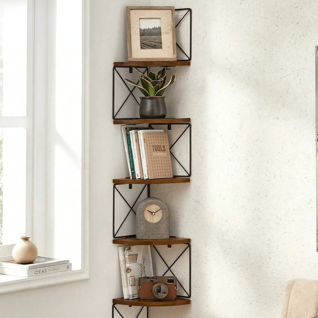 Mensola Angolare Materiale Legno Metallo Decorazione Parete Resistente Mensola Porta Oggetti