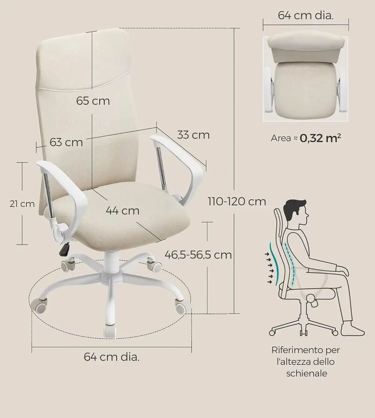 Altezza del sedile: 46,5-56,5 cm.