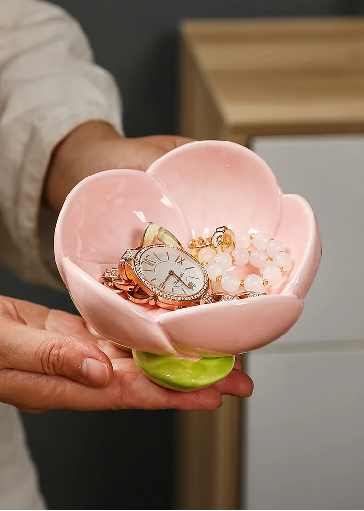 Svuota Tasche Modello Fiore Materiale Ceramica Rosa Giallo Svuota Tasche Porta Oggetti Decorazione Casa