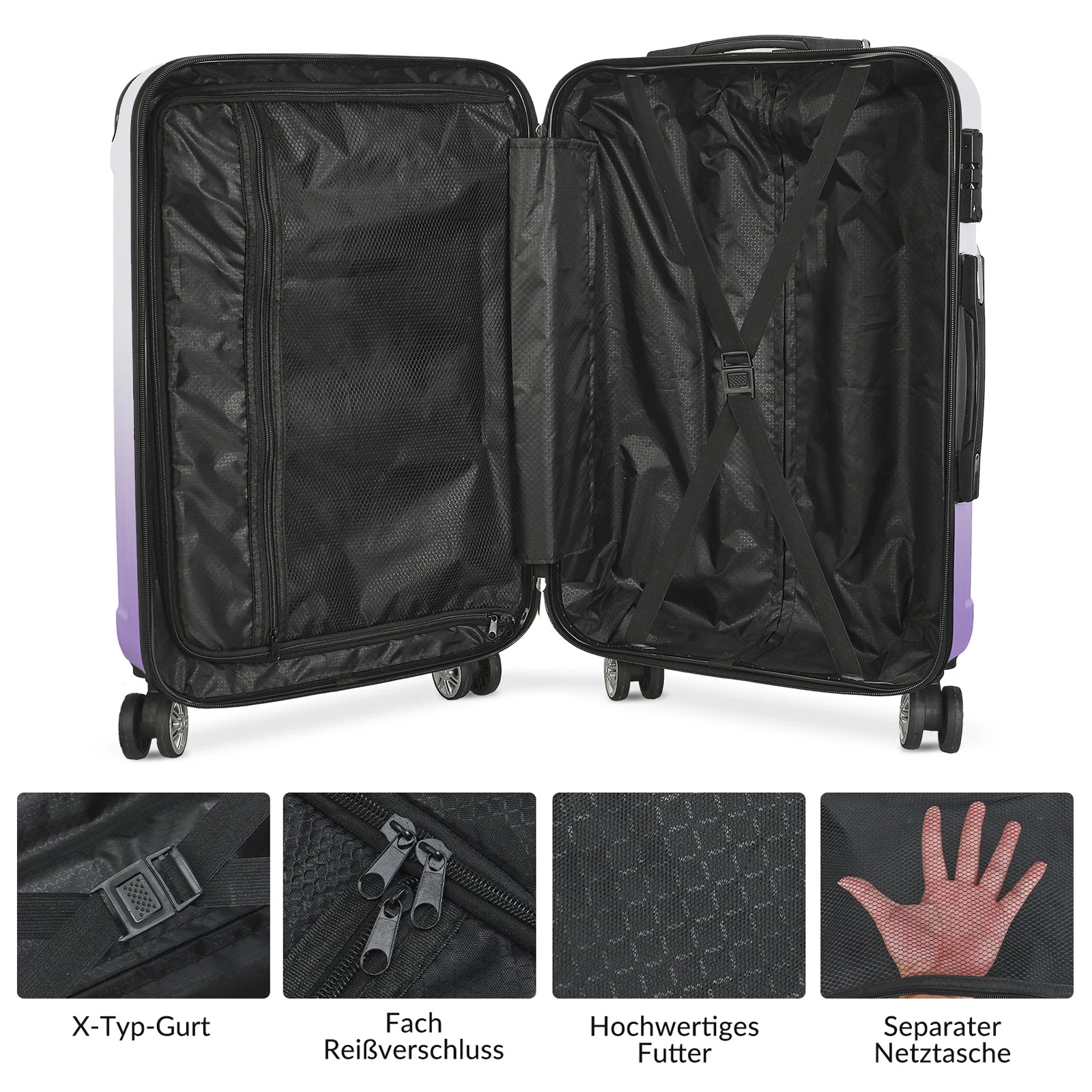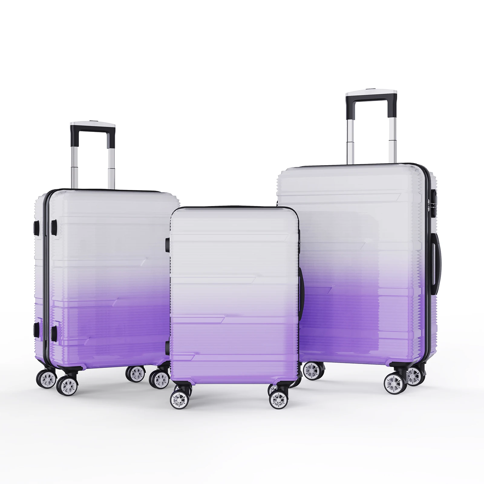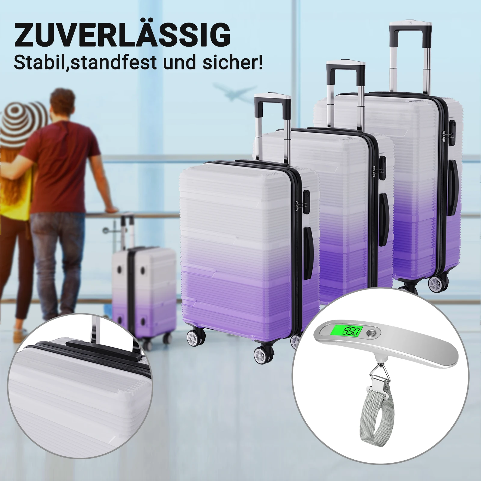 Set 3 Valigie Sfumatura Viola Diverse Dimensioni Ruote Rotazione 360°