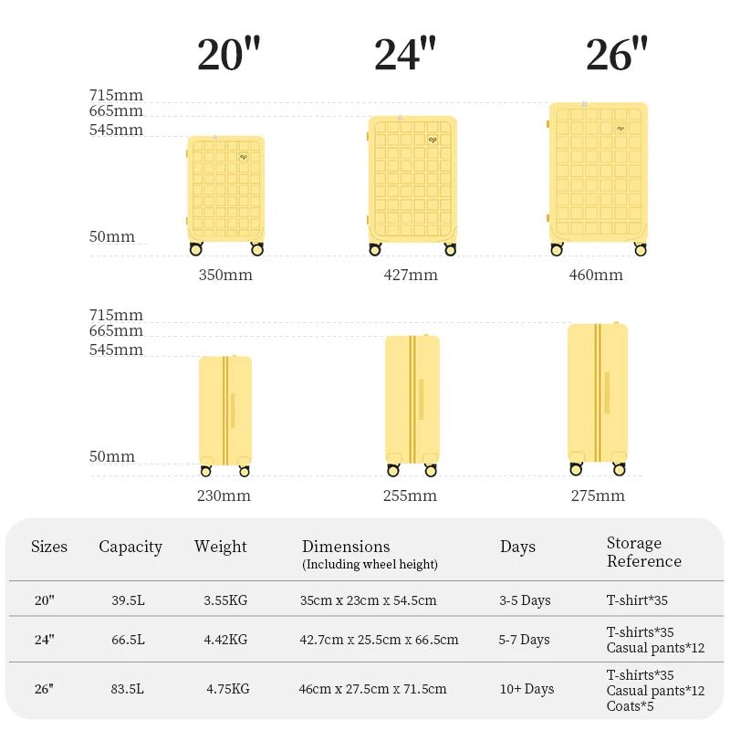 - Dimensioni: 54.5x35x23cm (39.5L) / 66.5x42.7x25.5cm (66.5L) / 71.5x46x27.5cm (83.5);