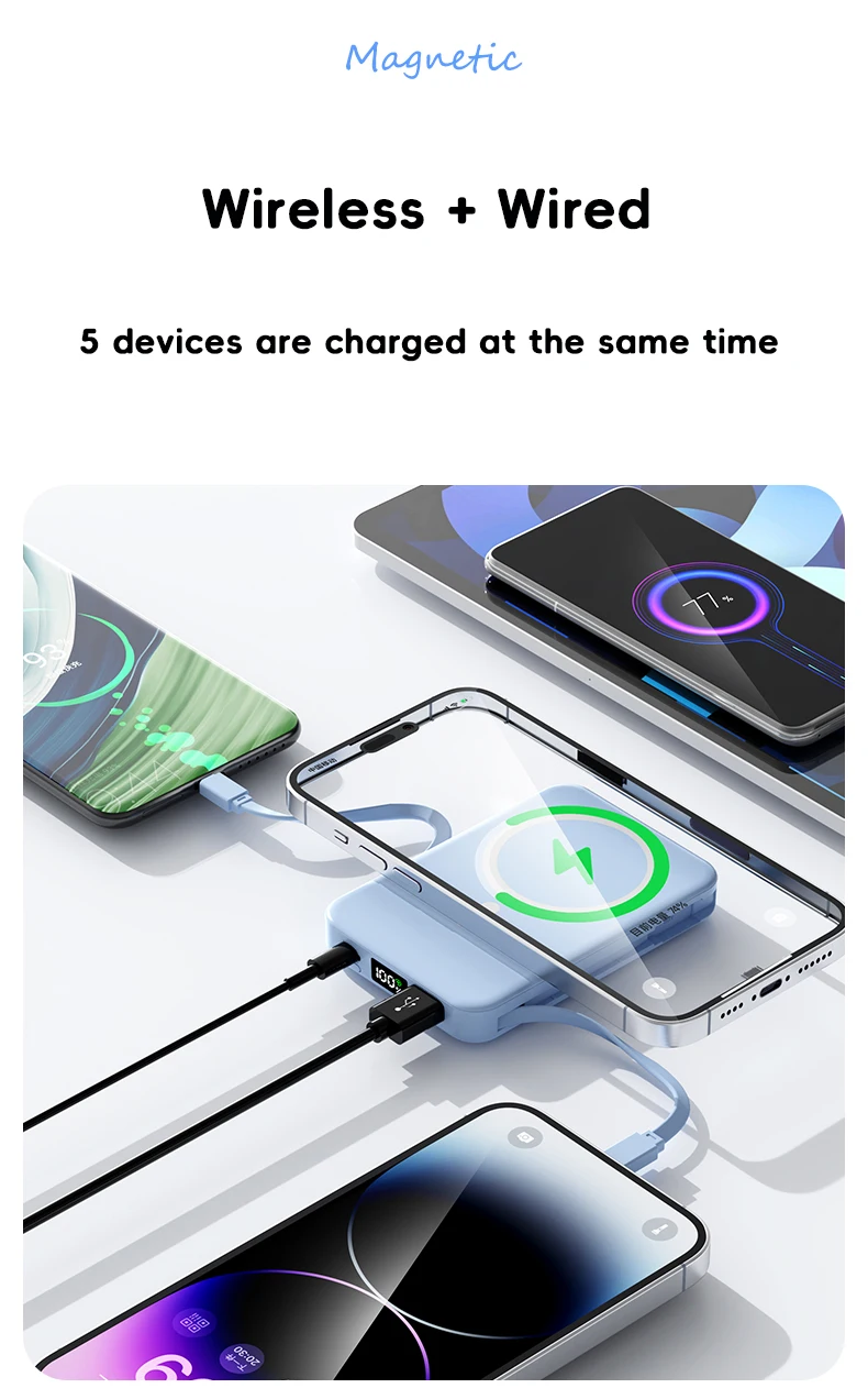 Power Bank Supporto Magnetico Wireless 10000 mAh Cavo USB Portatile Batteria Ricarica Rapida
