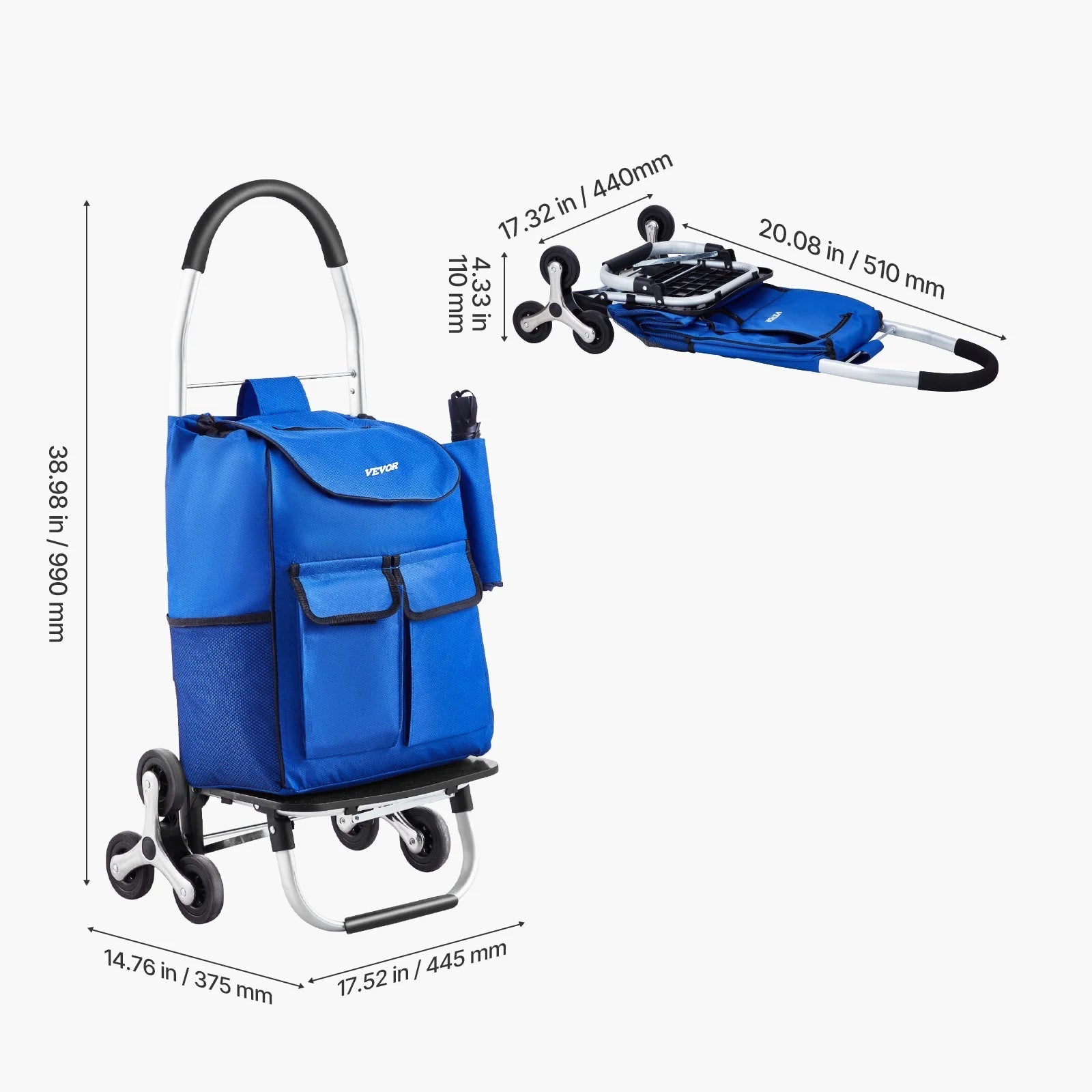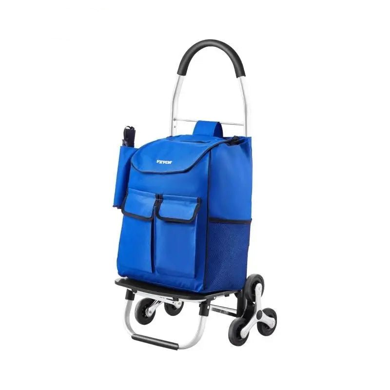 Carrellino Spesa Blu Tasche Capiente Cucina Esterno Utile Resistente Ruote Nere Bianche Plastica