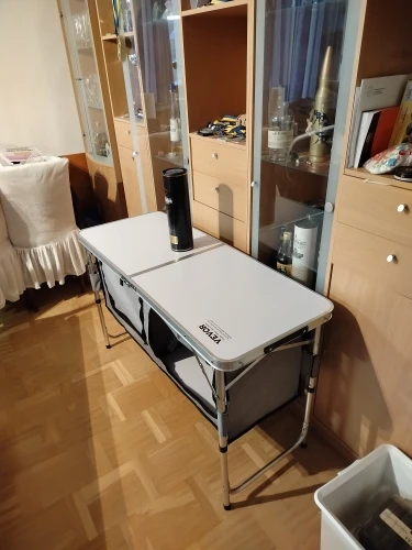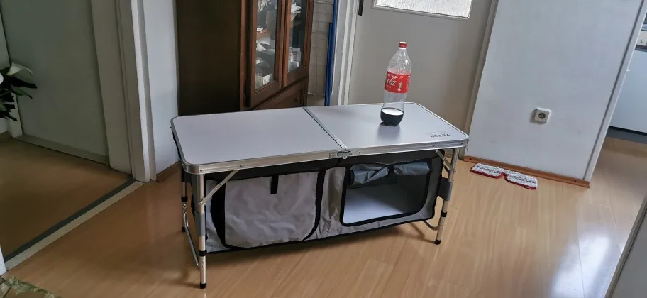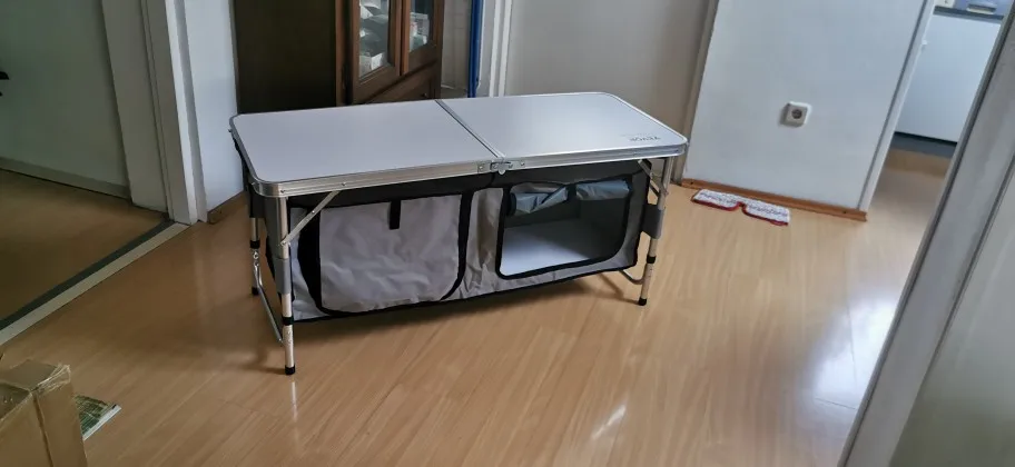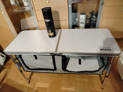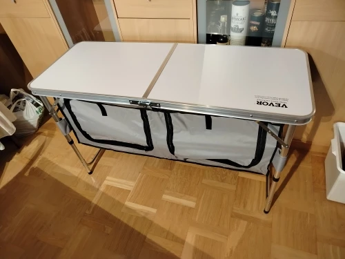 Grandi cose come sempre da Vevor, tavolo da campeggio leggero che funzionerà per molti anni se viene utilizzato nel modo giusto e un bel deposito sotto che può essere lasciato in posizione dopo la prima installazione, ma la scheda inferiore deve essere tolta prima di piegare il tavolo. Consegna veloce sotto una settimana in Europa.