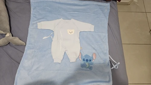 Ho indossato la tuta appena nata per mostrare le dimensioni della coperta.