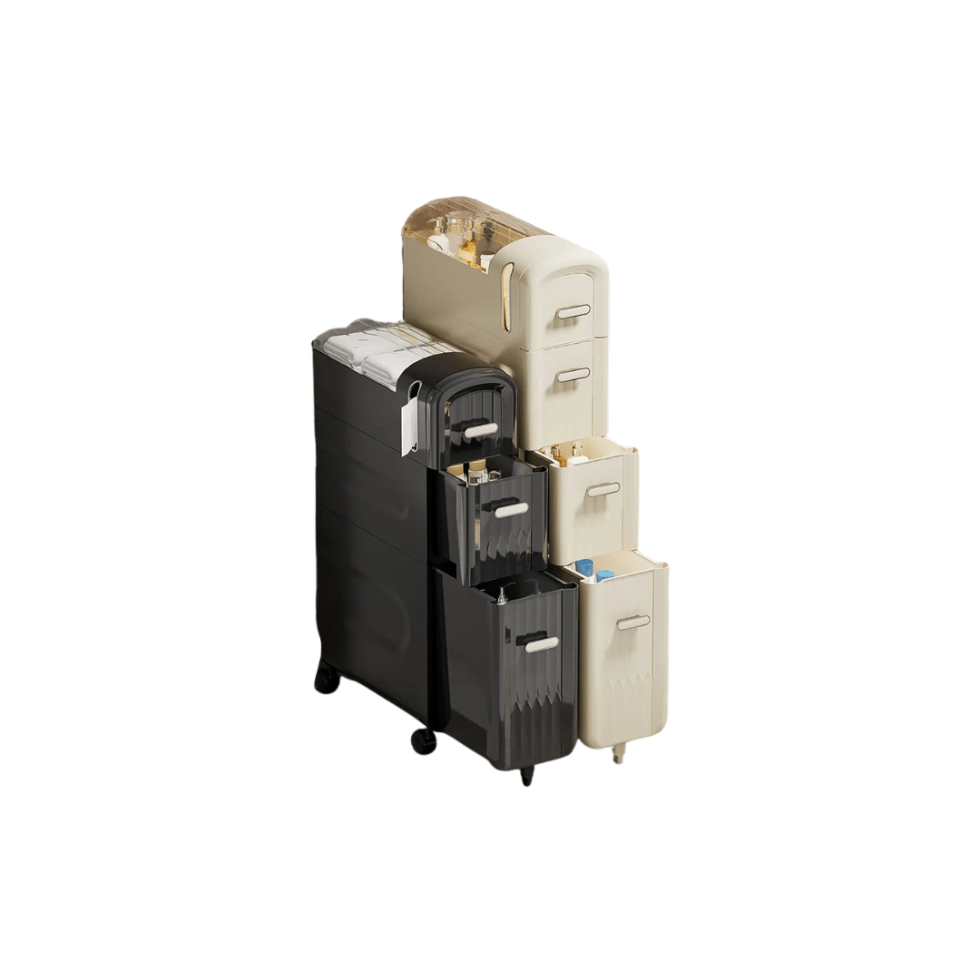 Organizer Bagno Diversi Ripiani Diverse Dimensioni Panna Bianco Nero Plastica Resitente