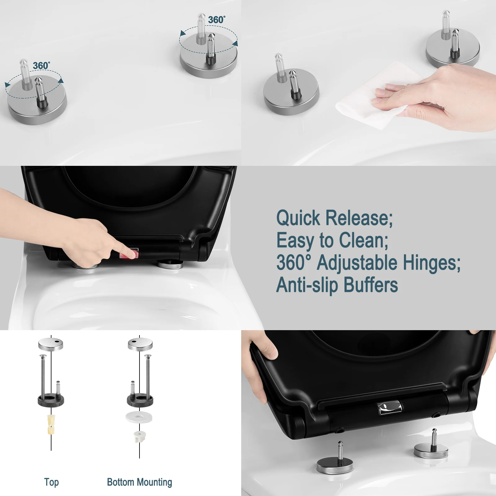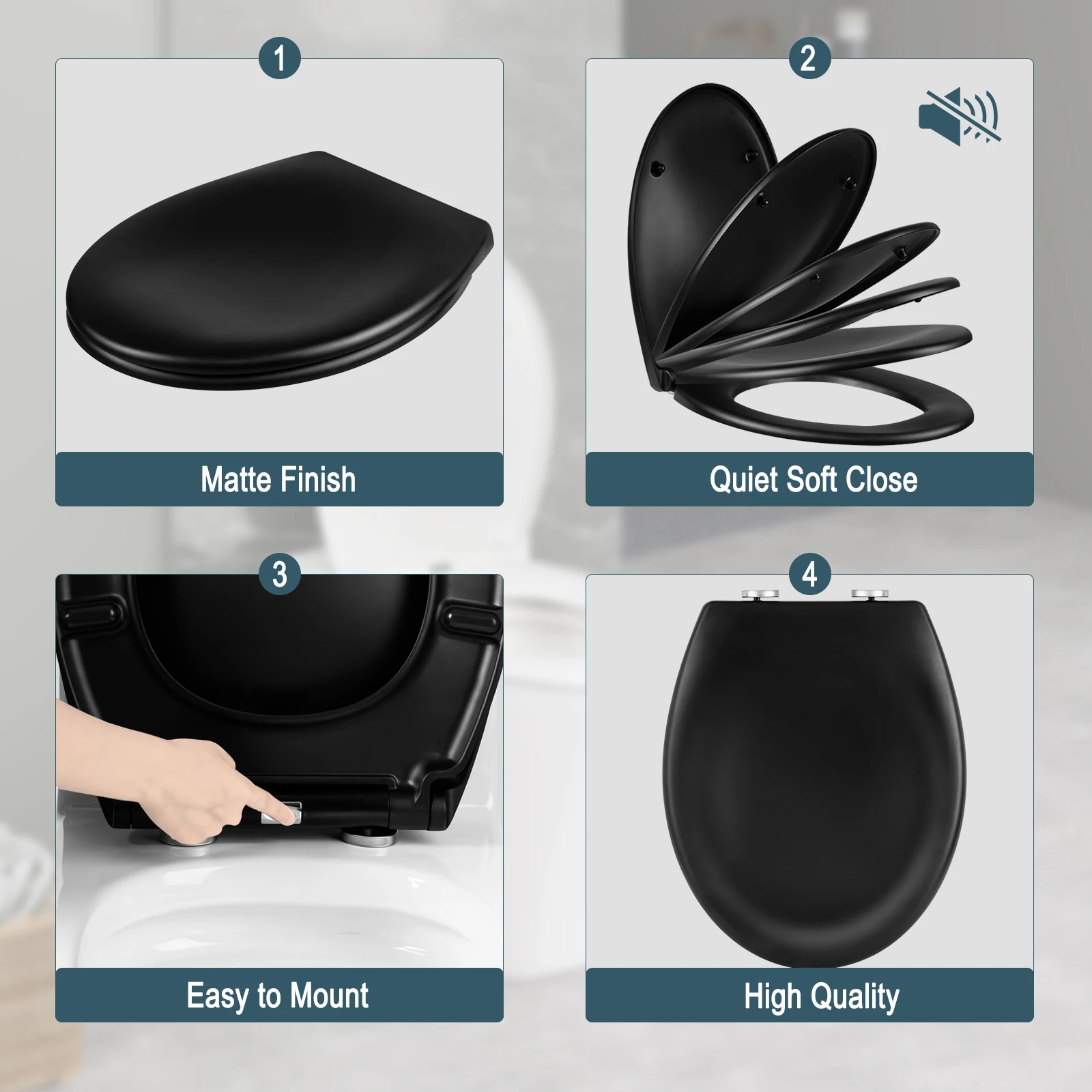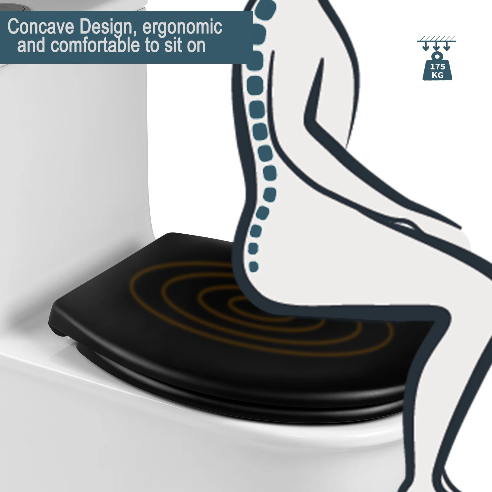 Tavoletta WC Materiale Termoplastica Nero Supporto WC Decorazione Bagno Chiusura Lenta