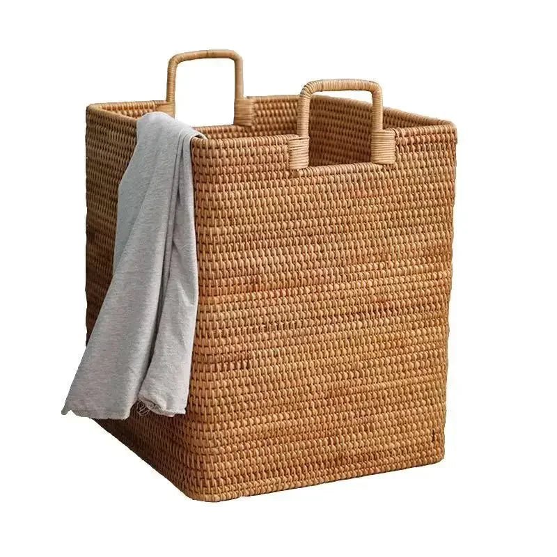 Cesto Biancheria Marrone Chiaro Scuro Capacità 55 Litri Rattan Quadrato Bagno