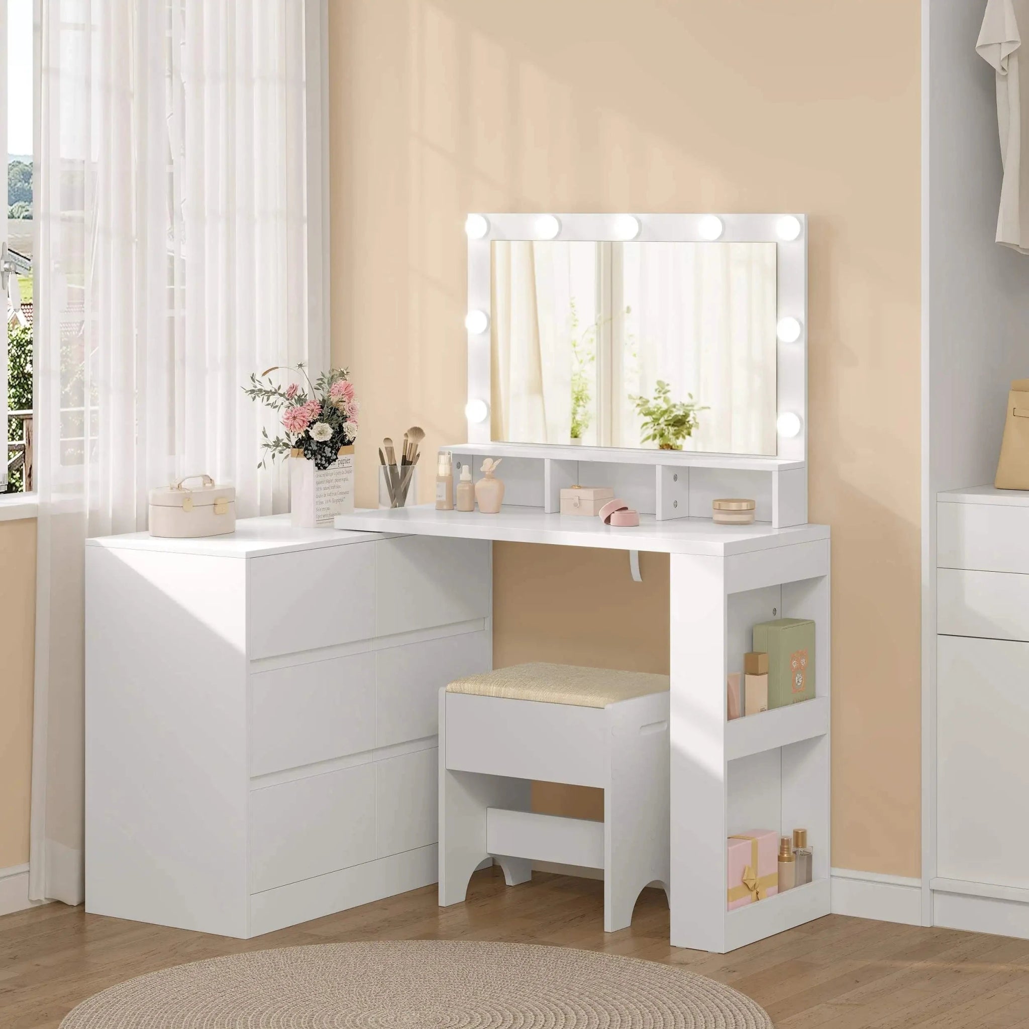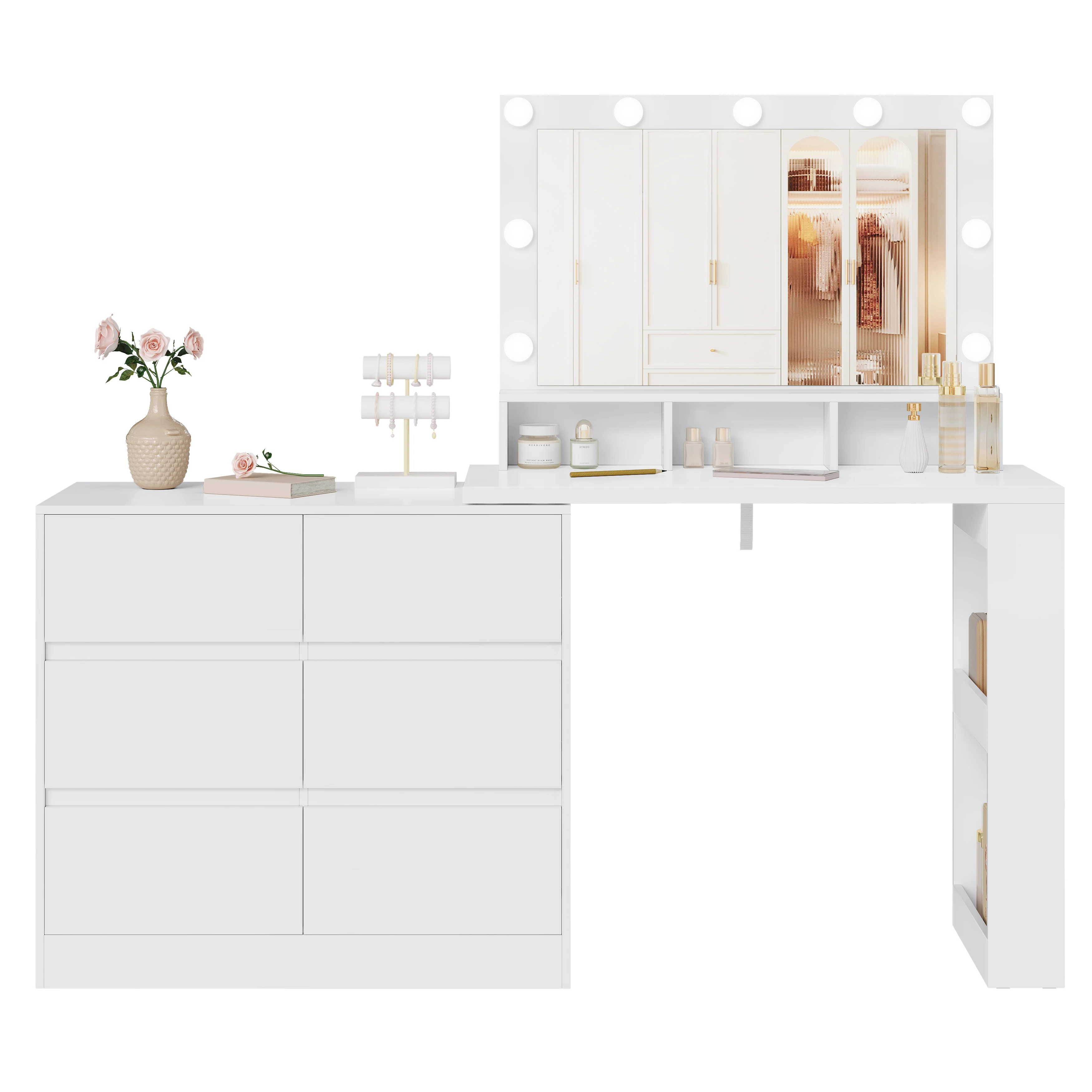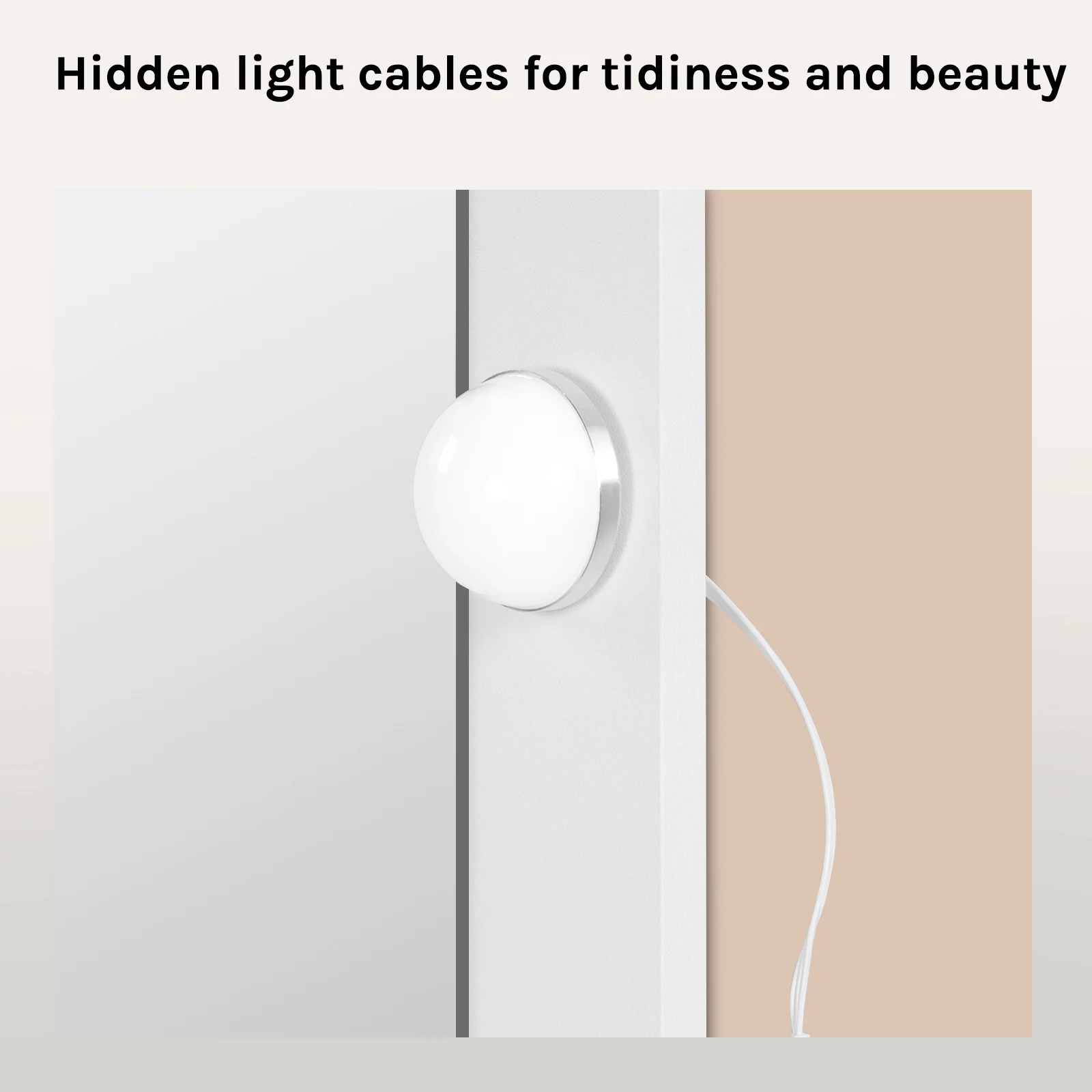 Comò Luci Led Legno Specchio Lampadine Trucco Camera Letto Elegante Bianco Grande