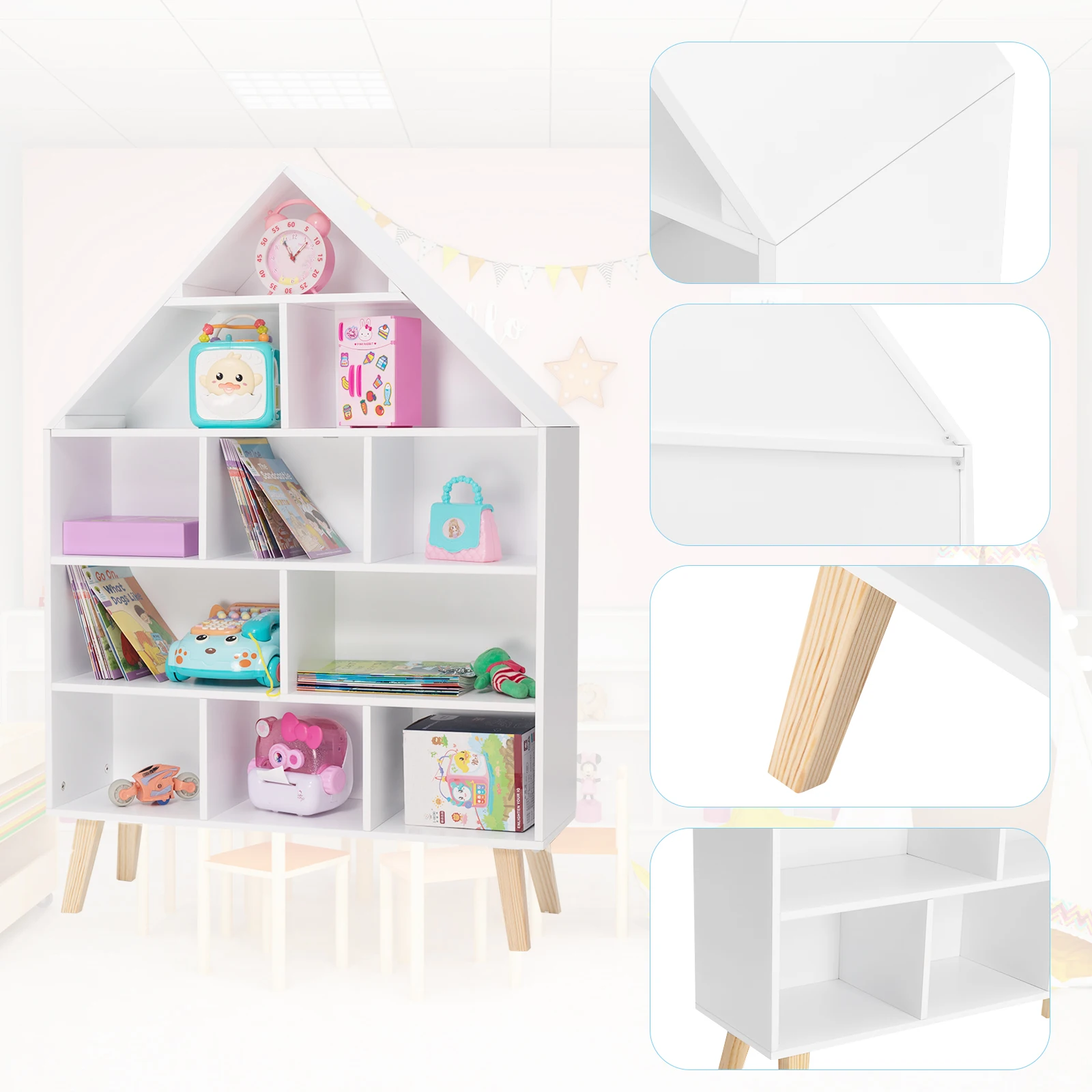Libreria Per Bambini Materiale Legno Decorazione Camera 5 Ripiani Modello Casa Design Creativo
