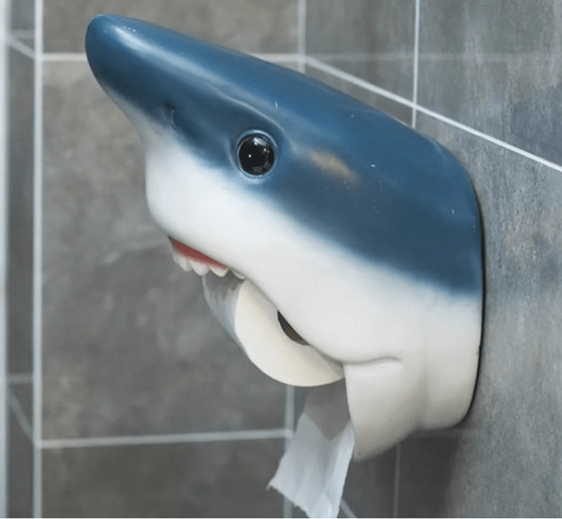 Porta Rotolo Organizer Bagno Squalo Azzurro Bianco Utile Particolare Simpatico Resistente