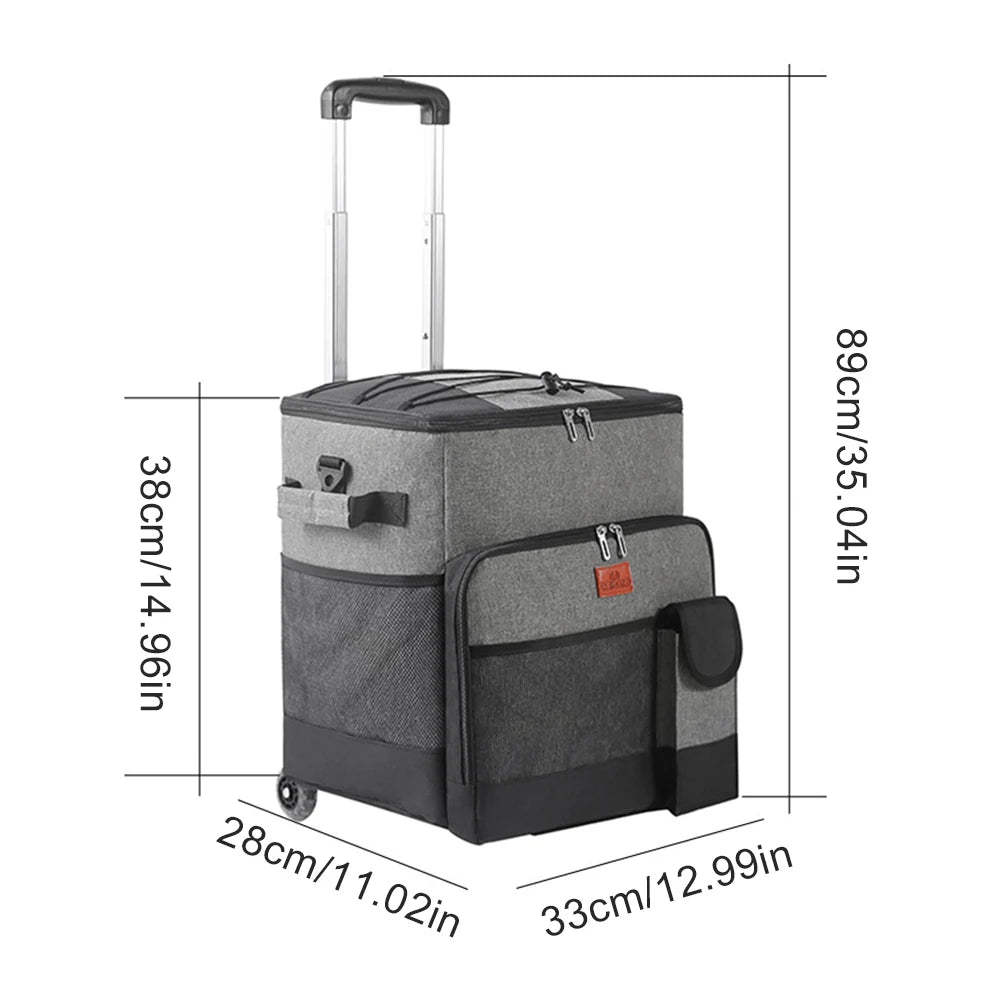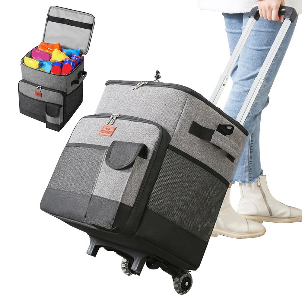 Borsa Termica Carrello Pieghevole 35L Grigio Viaggi Ruote Capiente Utile Comoda Pratica