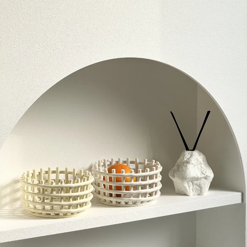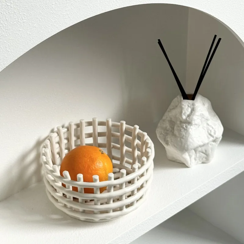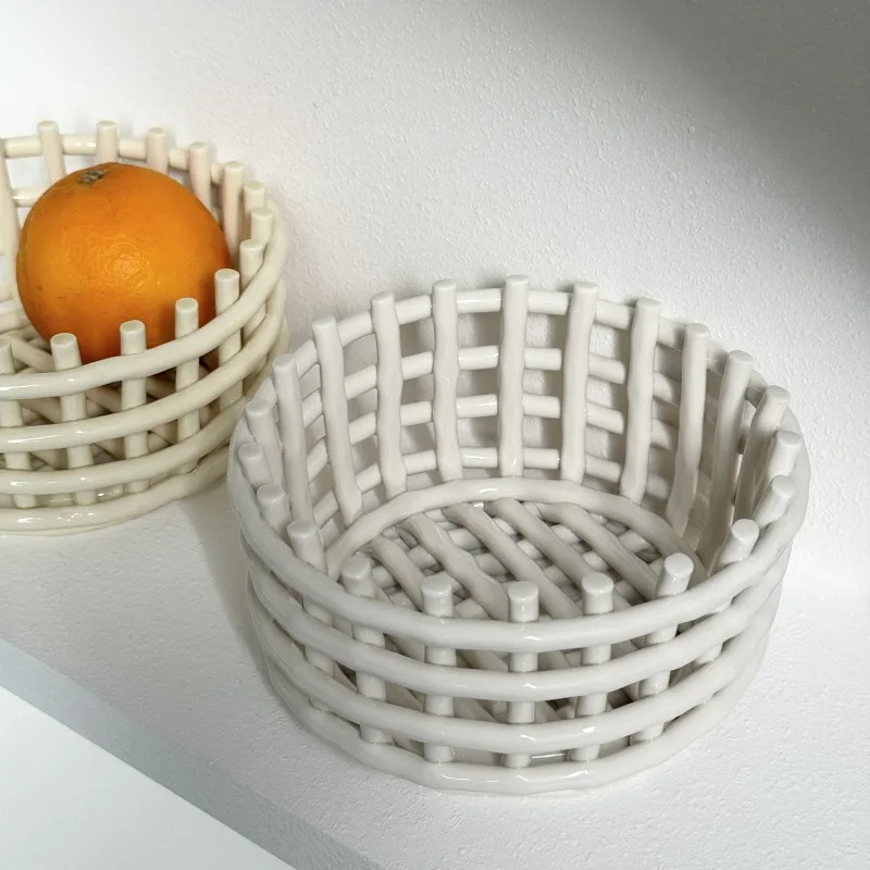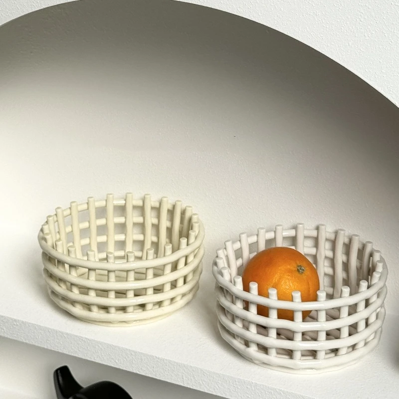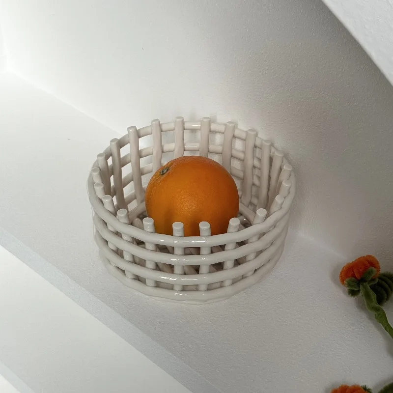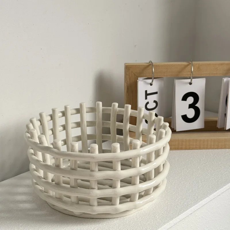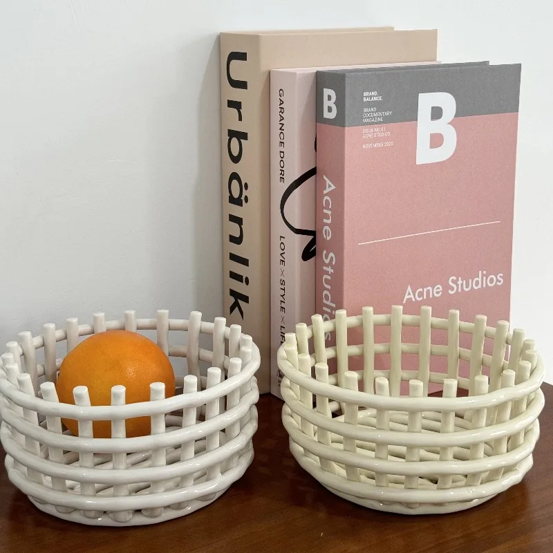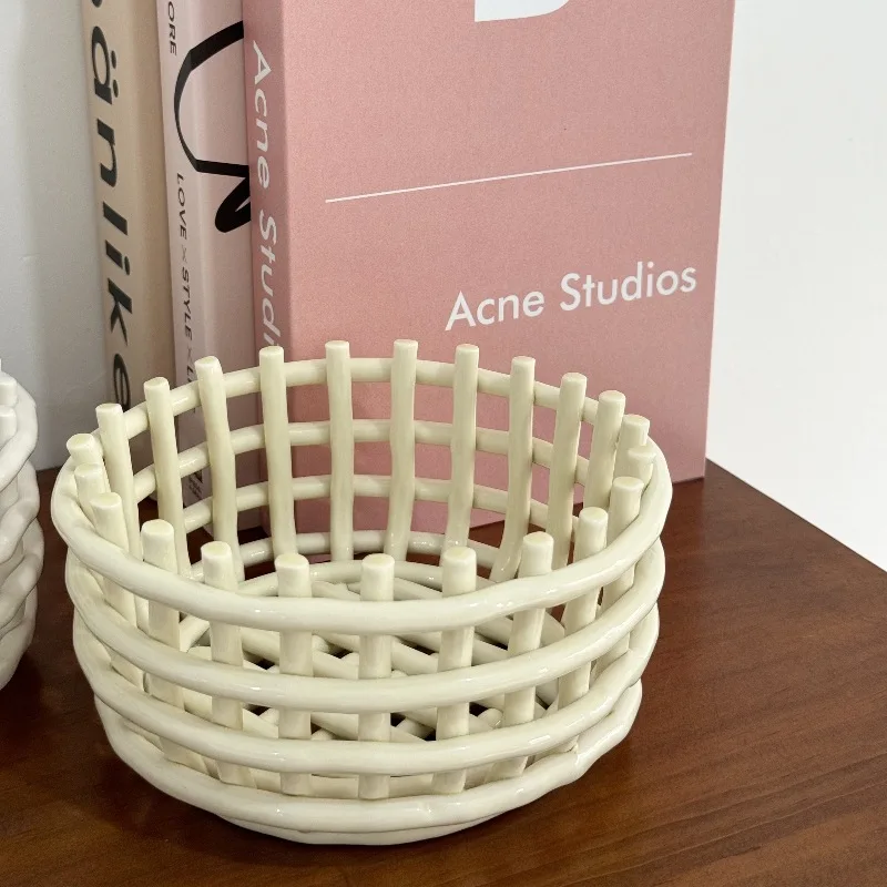 Cestino Porta Oggetti Materiale Ceramica Cestino Decorazione Tavolo Modello Intrecciato