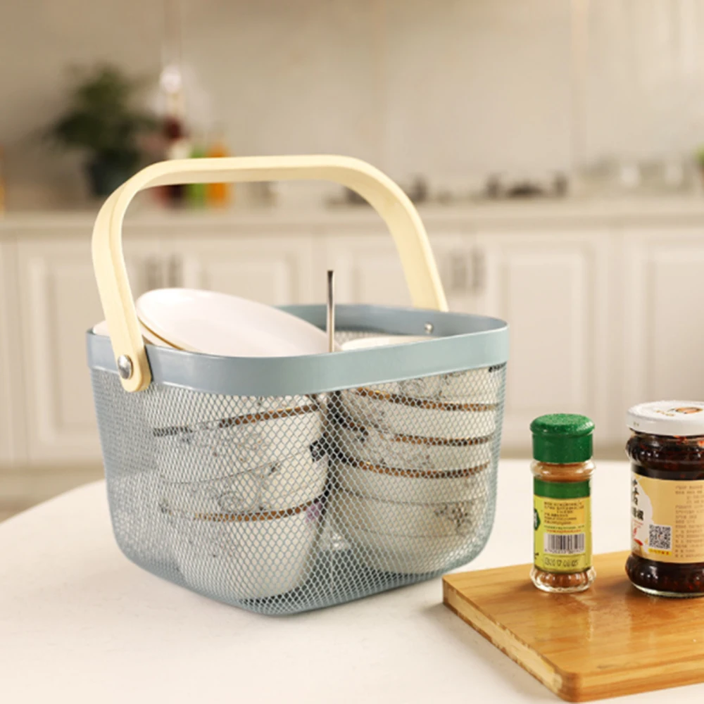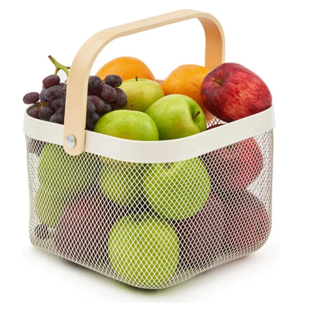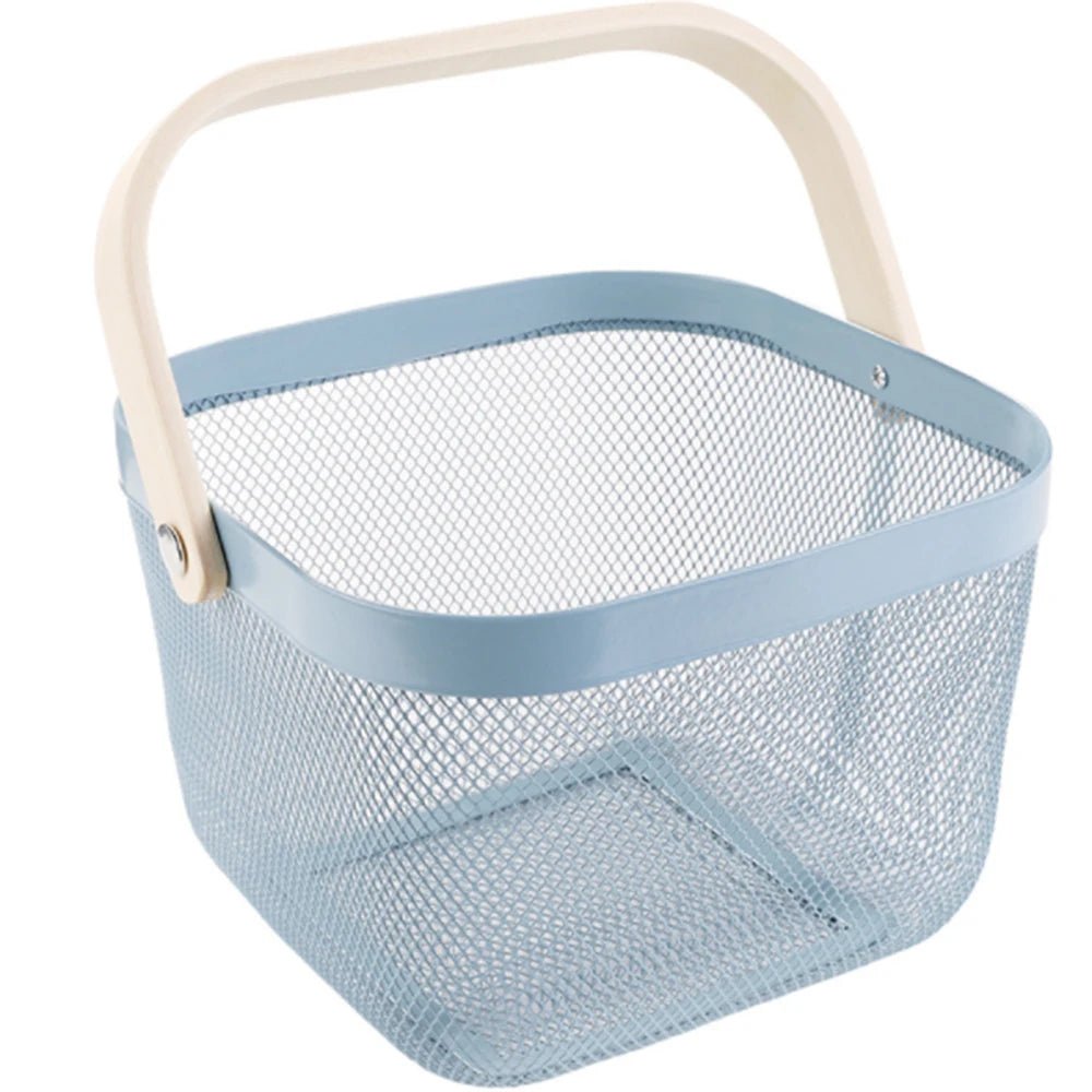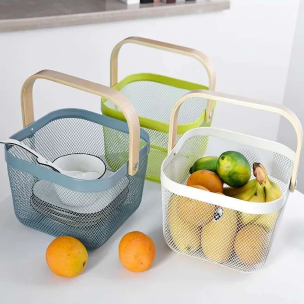 Cesto Frutta Metallo Portatile Piccolo Comodo Pick Nick Rosa Bianco Azzurro Manico Resistente