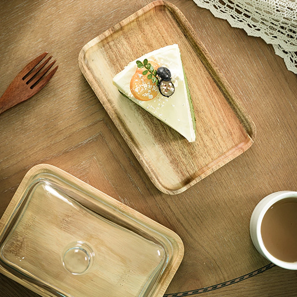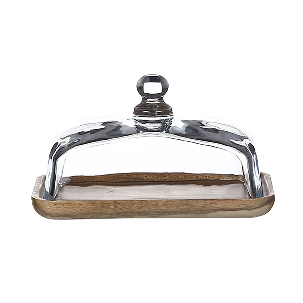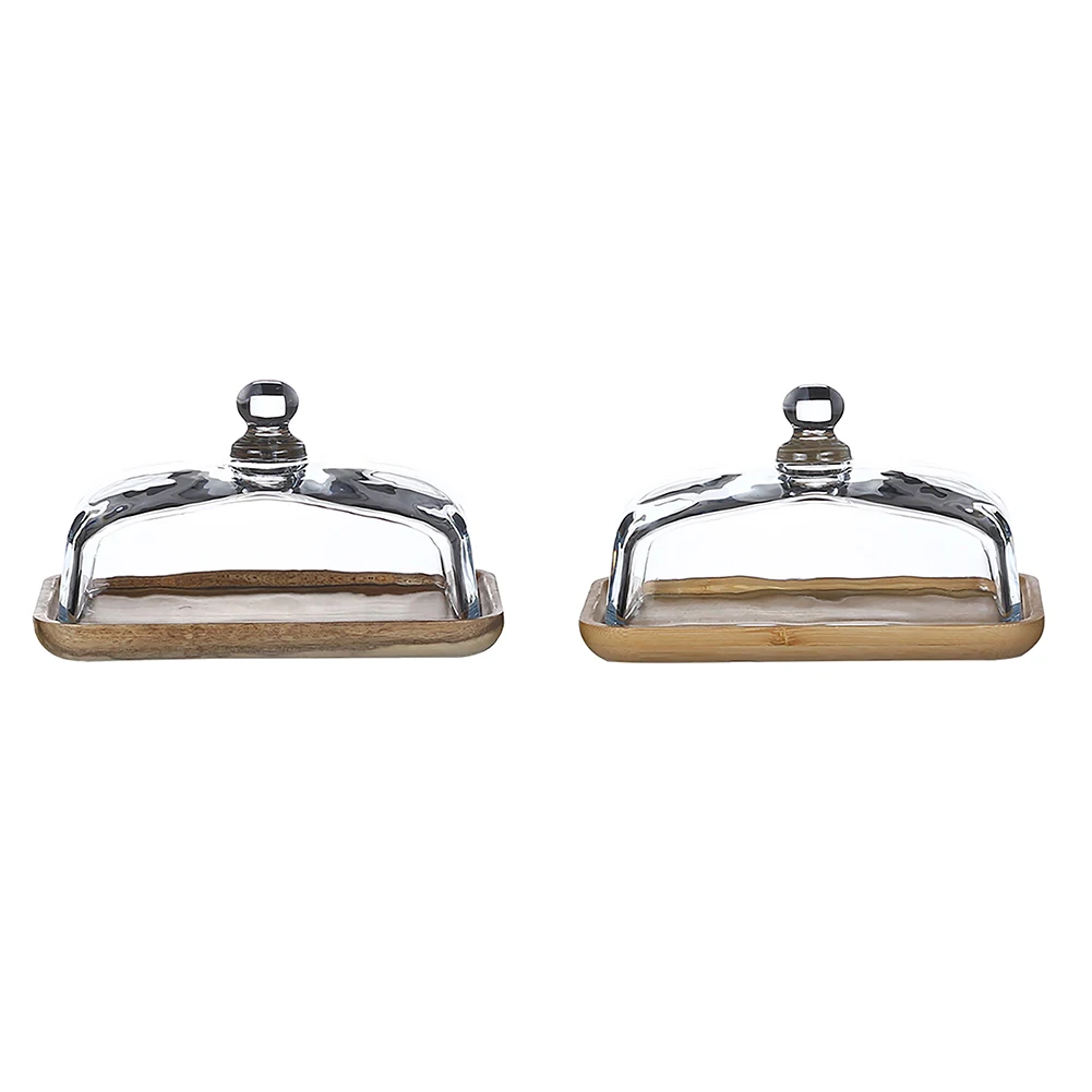 Porta Burro Materiale Legno Vetro Supporto Burro Contenitore Alimenti Vassoio