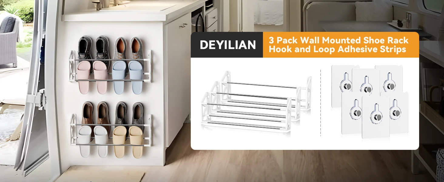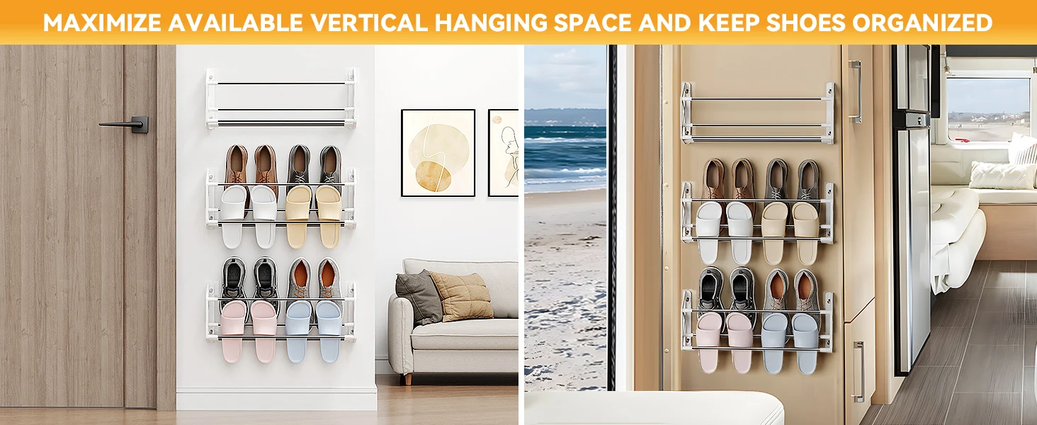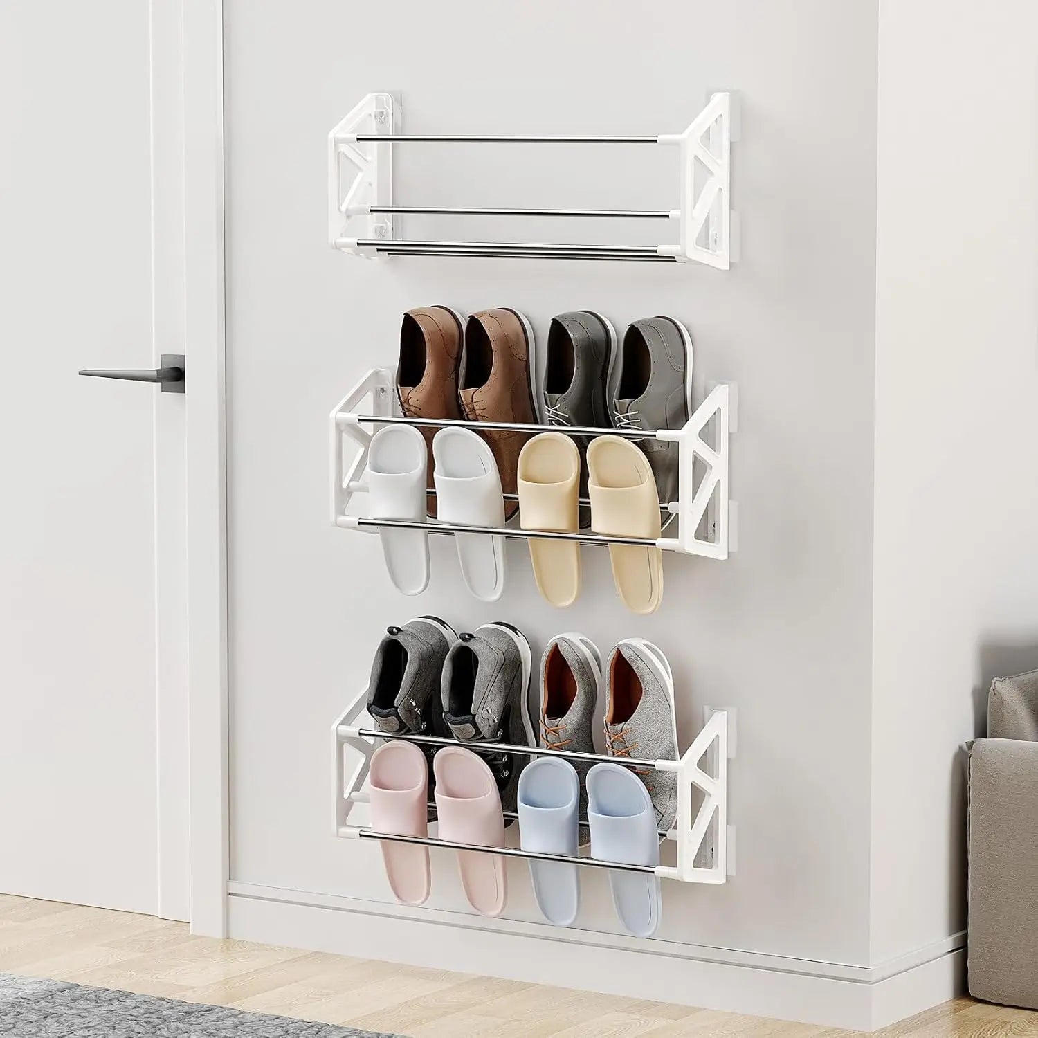 Scarpiera 3 Pezzi Plastica Acciaio Adesivo Installazione Parete Salva Spazio