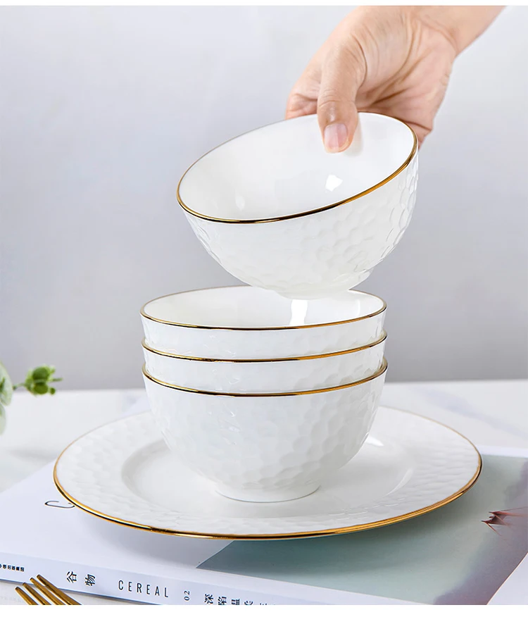 Set 4 Pezzi Piatti Ciotole Materiale Ceramica Design Semplice Moderno Resistente Decorazione Tavola