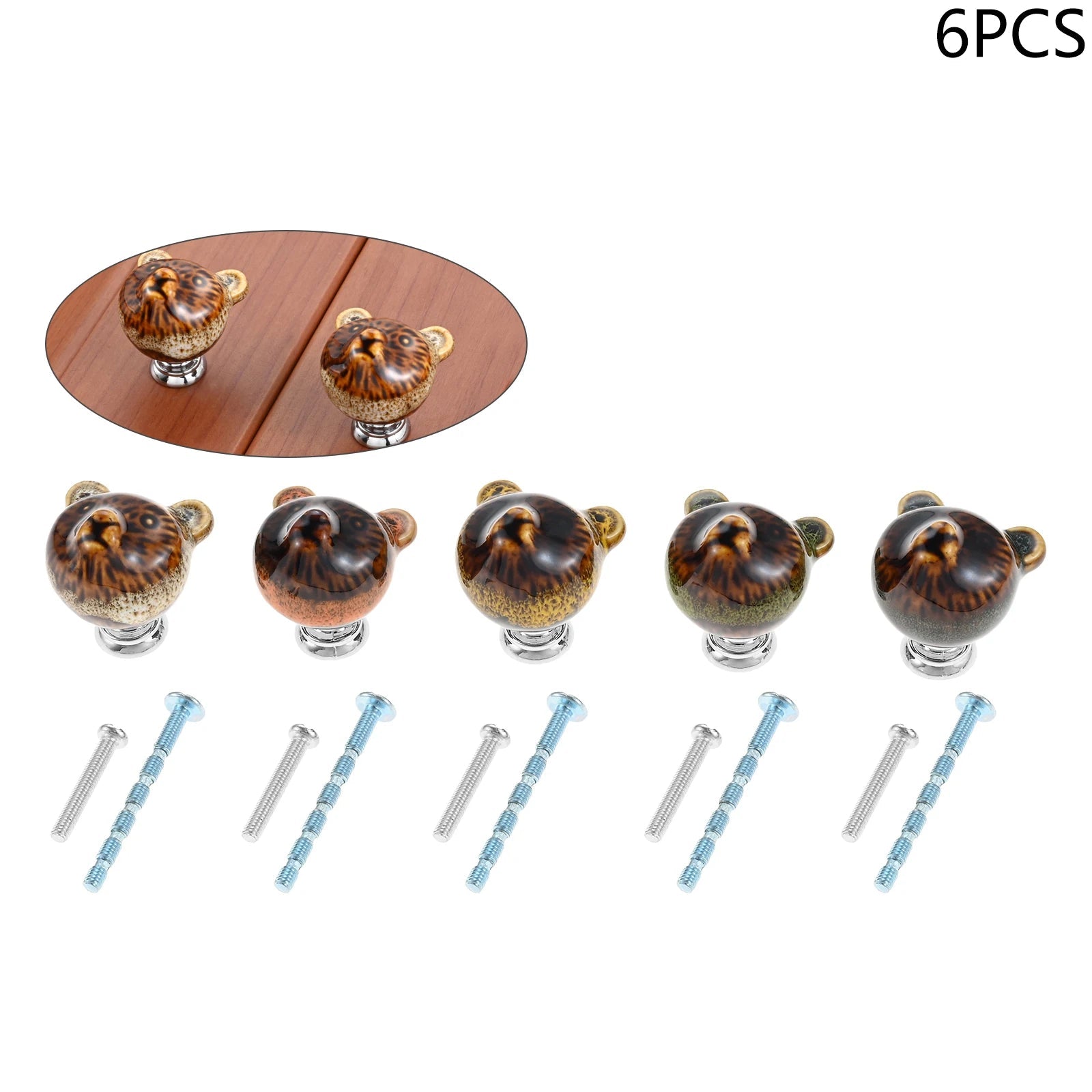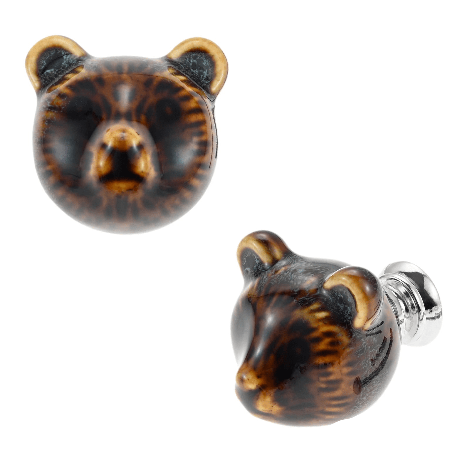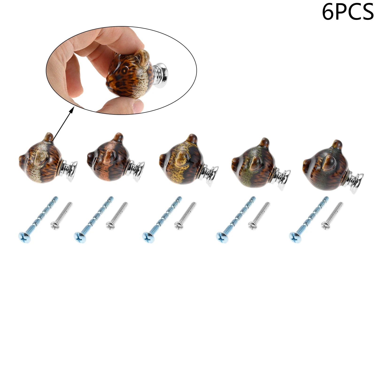 Set 6 Pomelli Marroni Forma Orso 12 Viti Incluse Ceramica Lega Zinco Diverse Sfumature