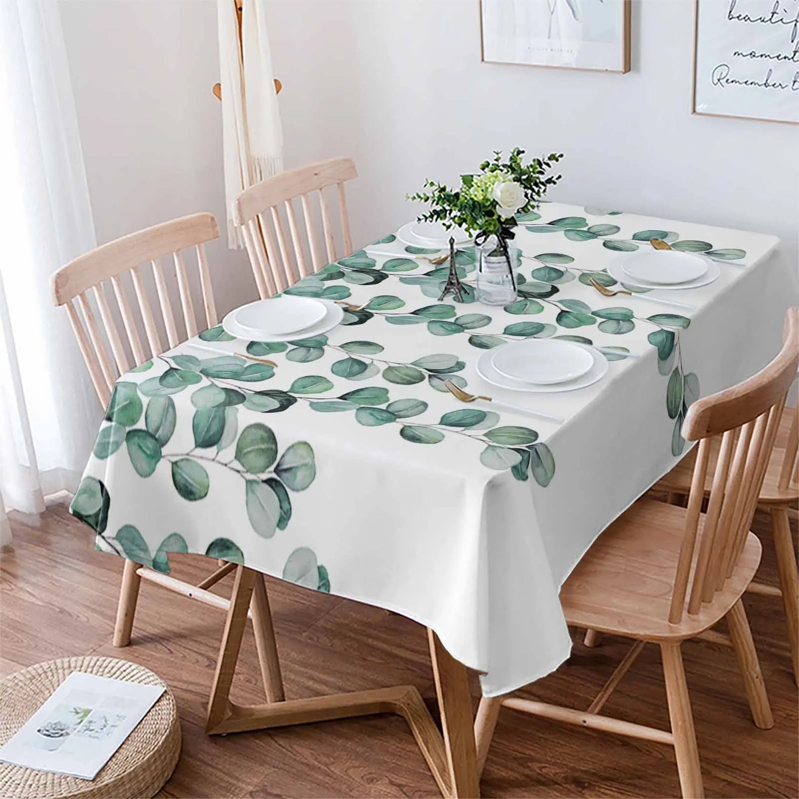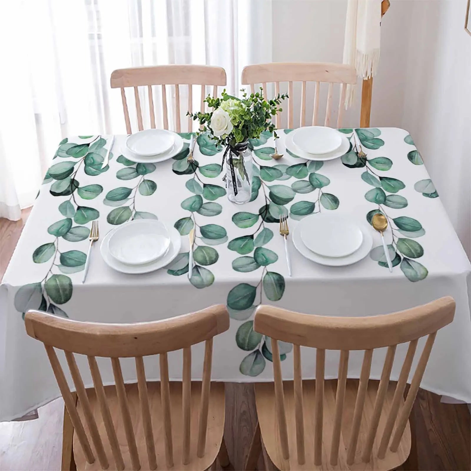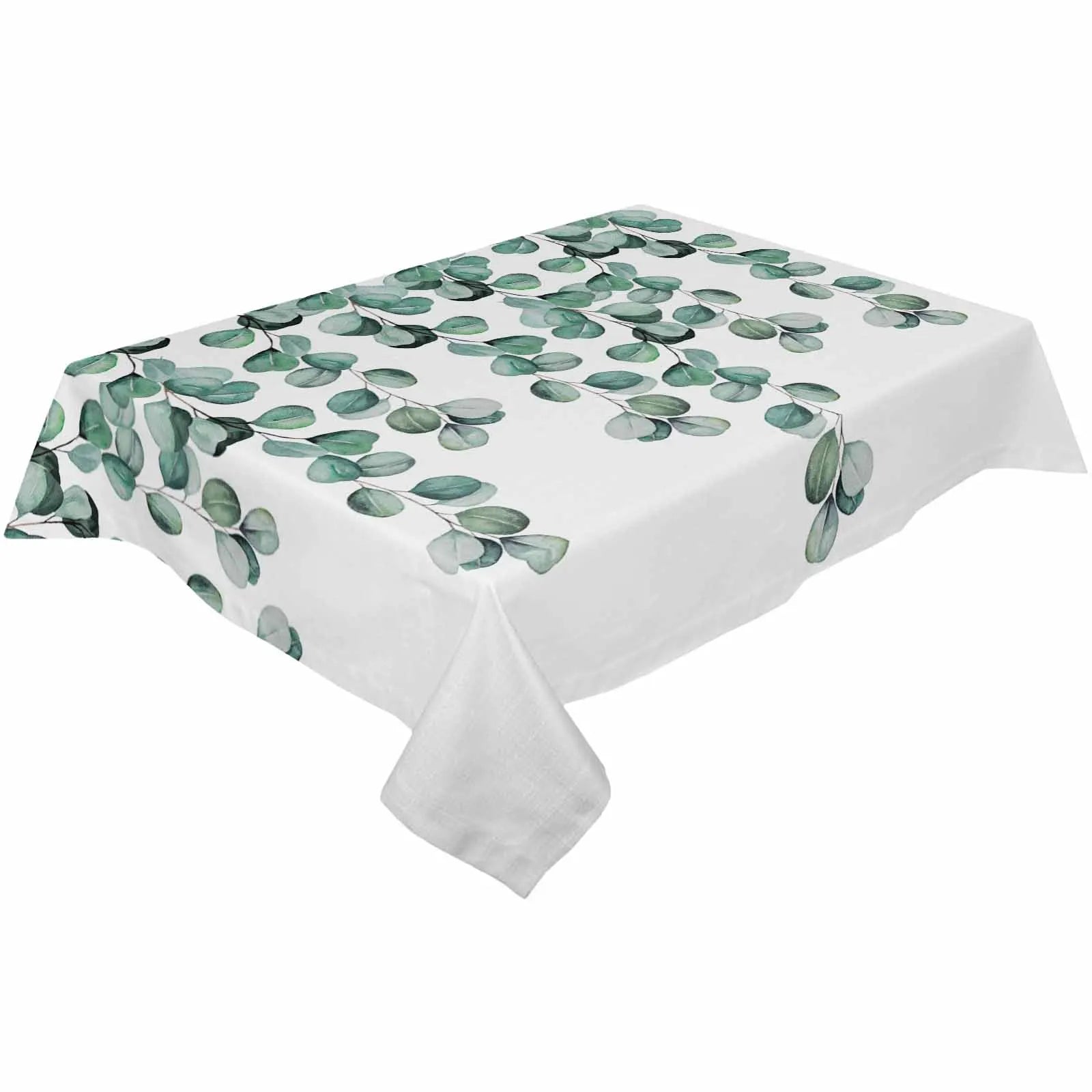 Tovaglia Bianca Foglie Verdi Poliestere Cotone Diverse Dimensioni
