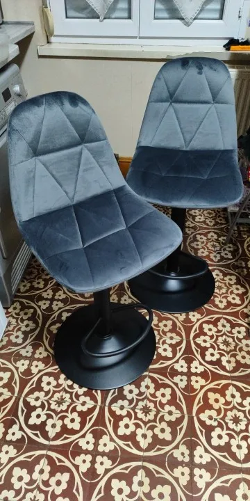 Set 2 Sgabelli Rotanti 360° Velluto Metallo Capacità Carico 120kg Diversi Colori Grigio Nero Arredamento