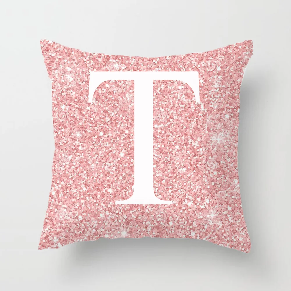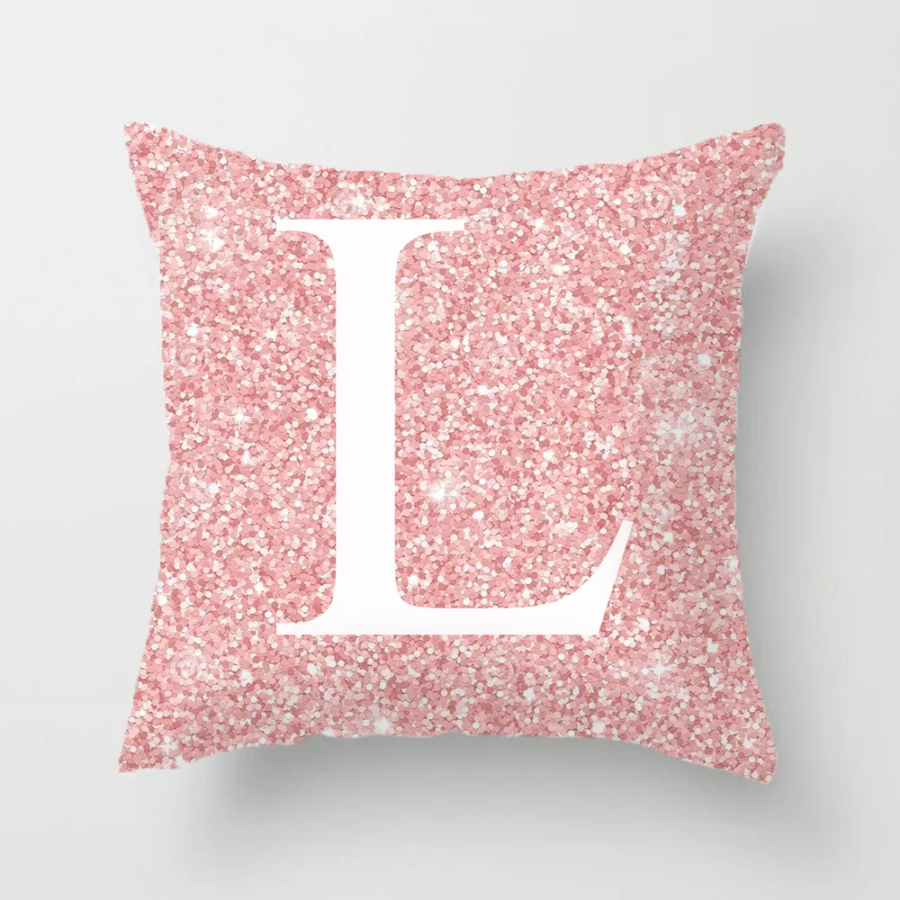 Federa Rosa Poliestere Cotone Dimensioni 45x45cm Lettere Alfabeto Personalizzato Arredamento Tessili