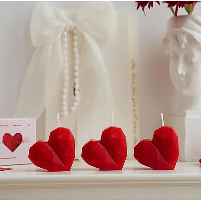Love Aromatherapy Candle Valentine's Day Wedding Gift Heart Shaped Handmade Atmosphere 3D Design Geometric Texture Shaped Candle