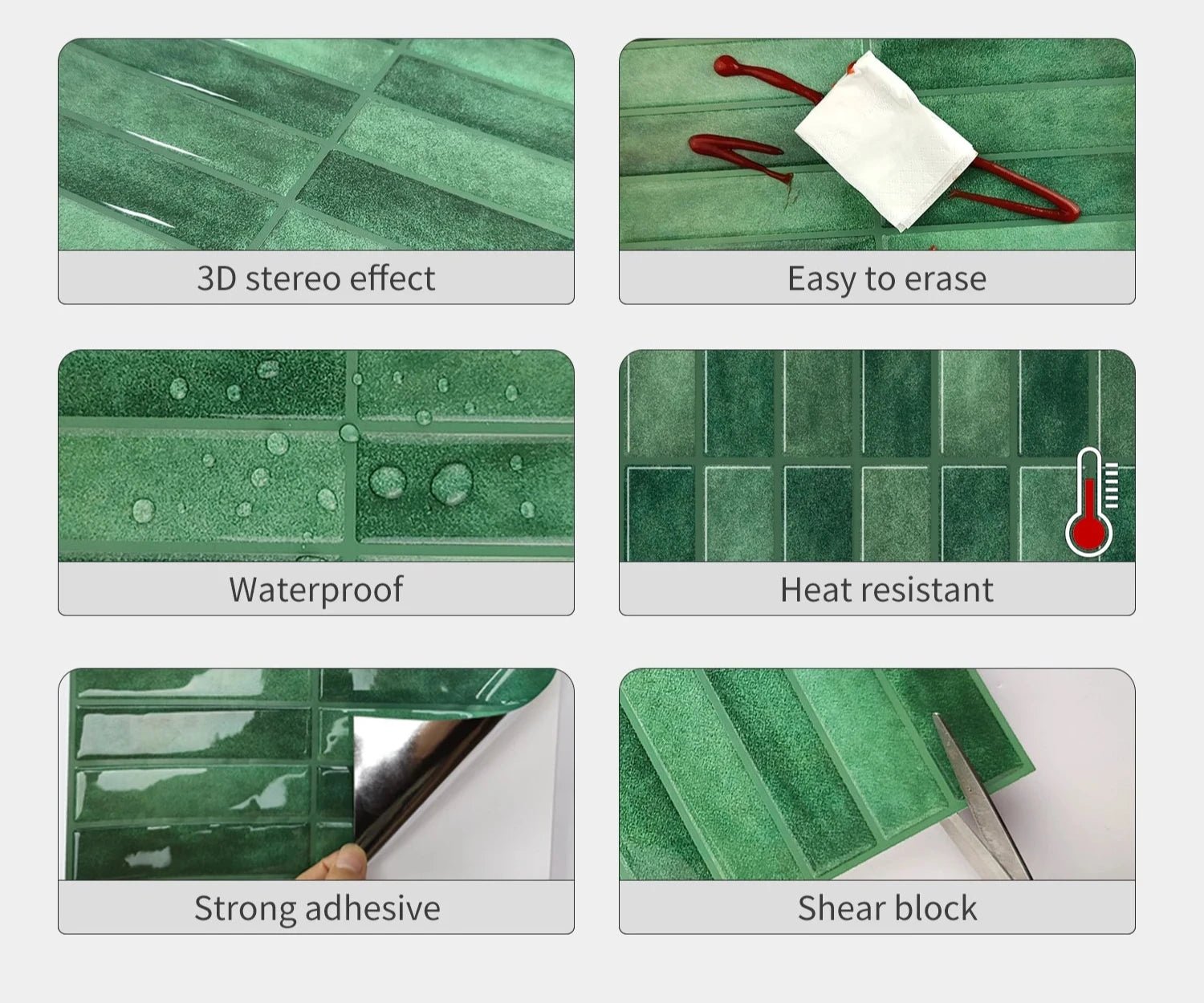 Set 10 Fogli Carta Da Parati Effetto Piastrelle Impermeabili 3D Adesivo Forte Impermeabile Lavabile Realistico Diversi Colori Arredamento Casa Parete